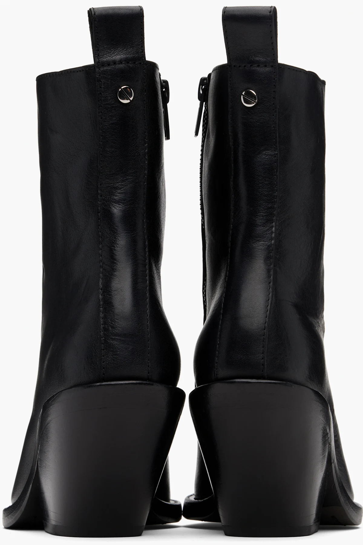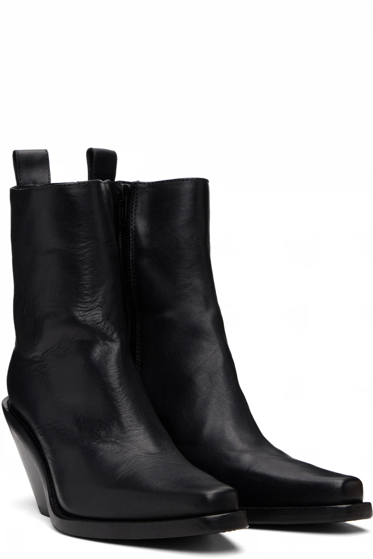 Ankle-high grained calfskin boots.