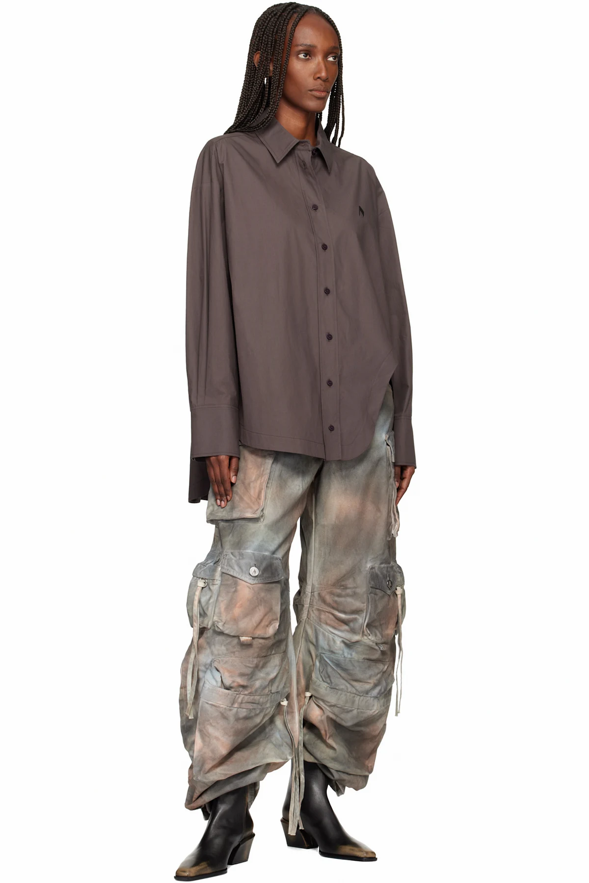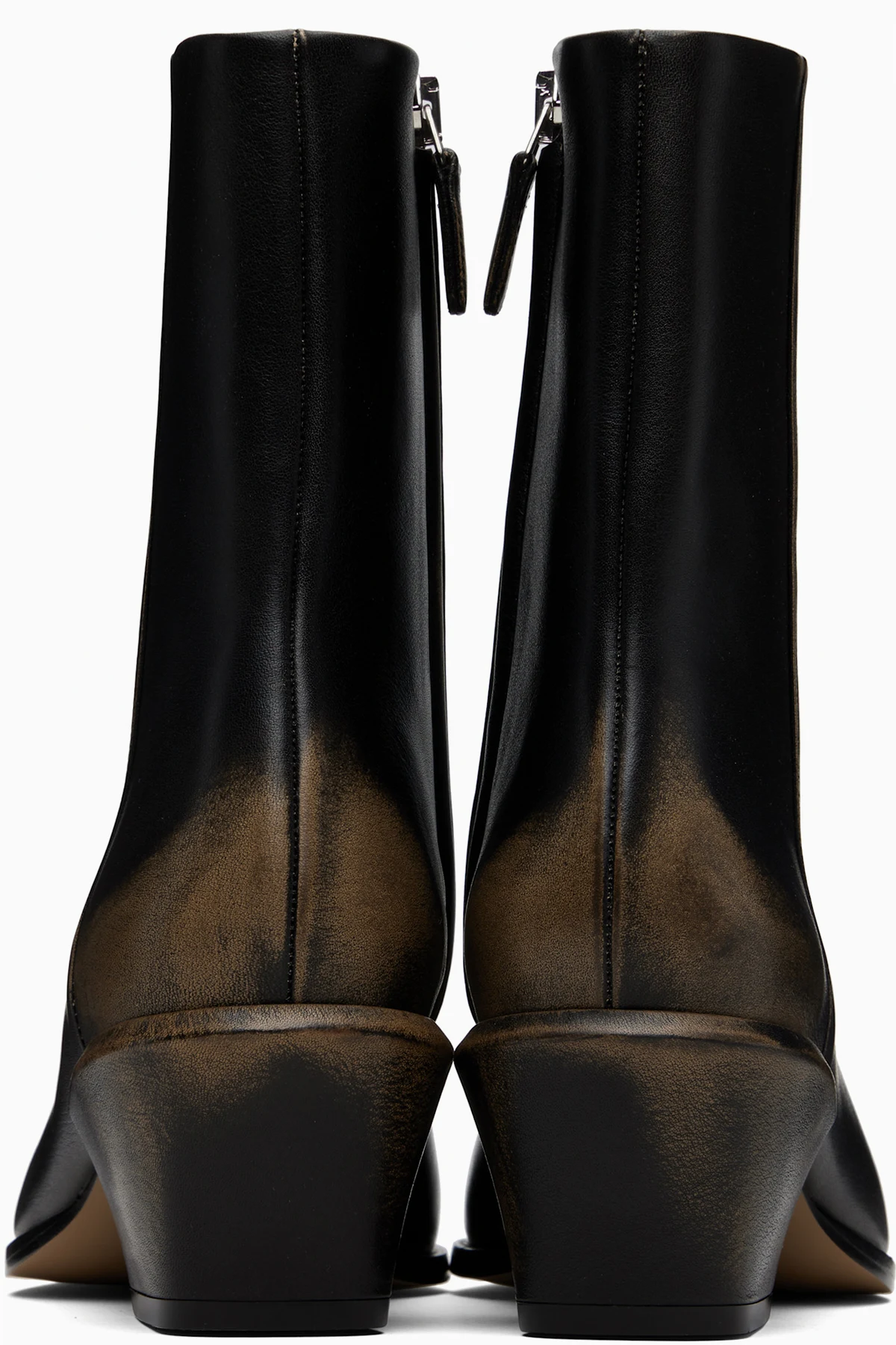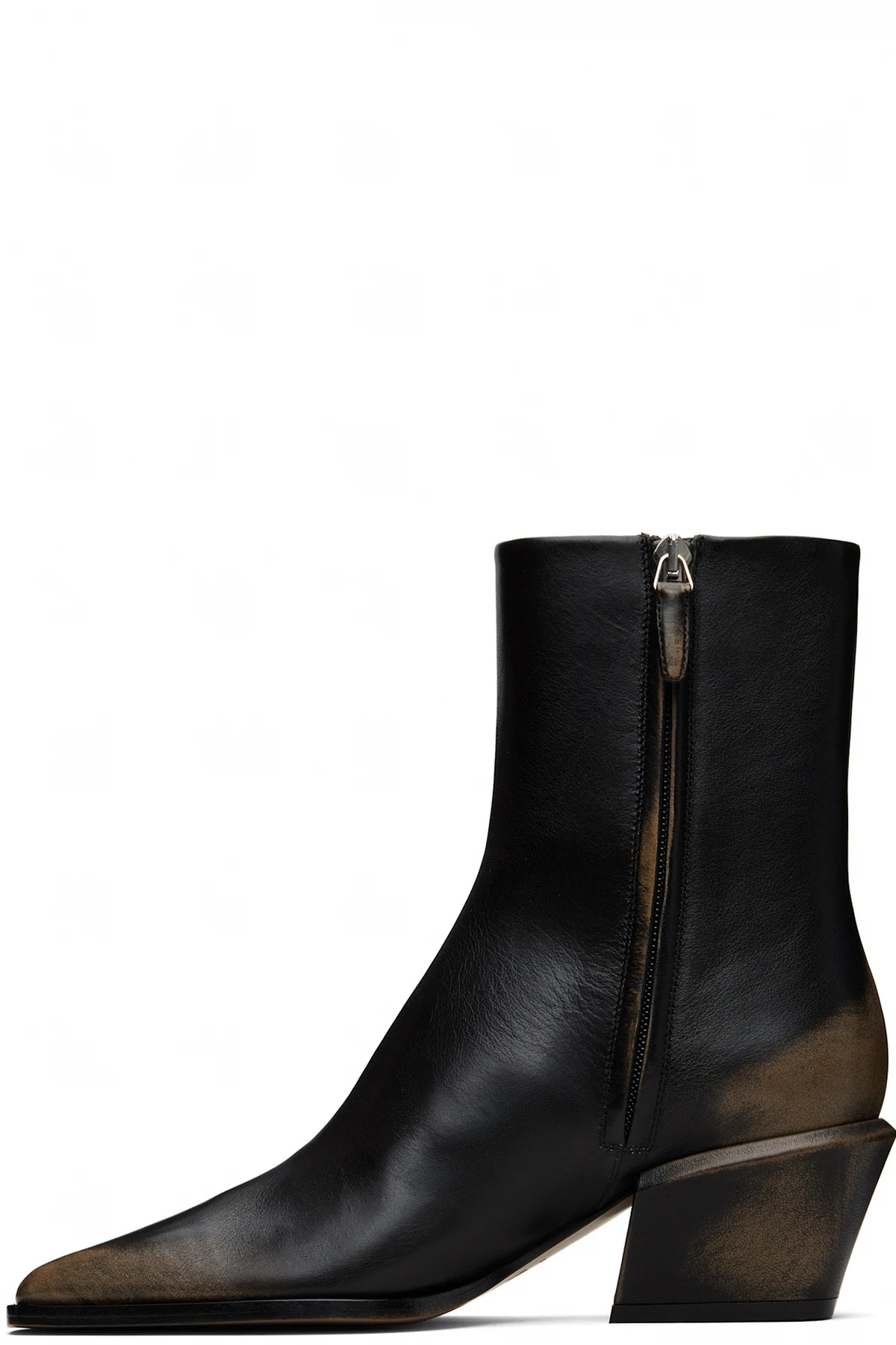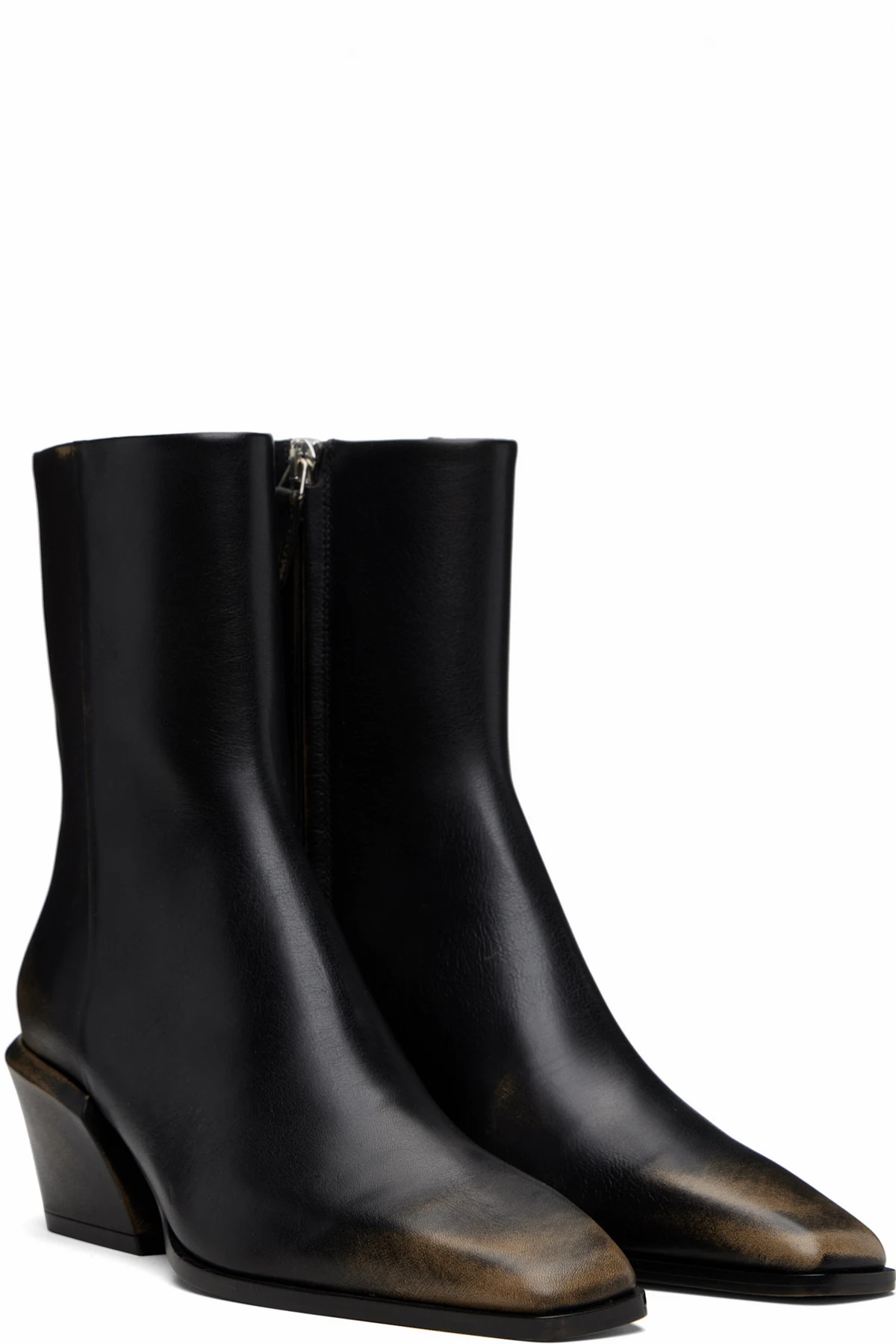 Ankle-high grained leather boots.