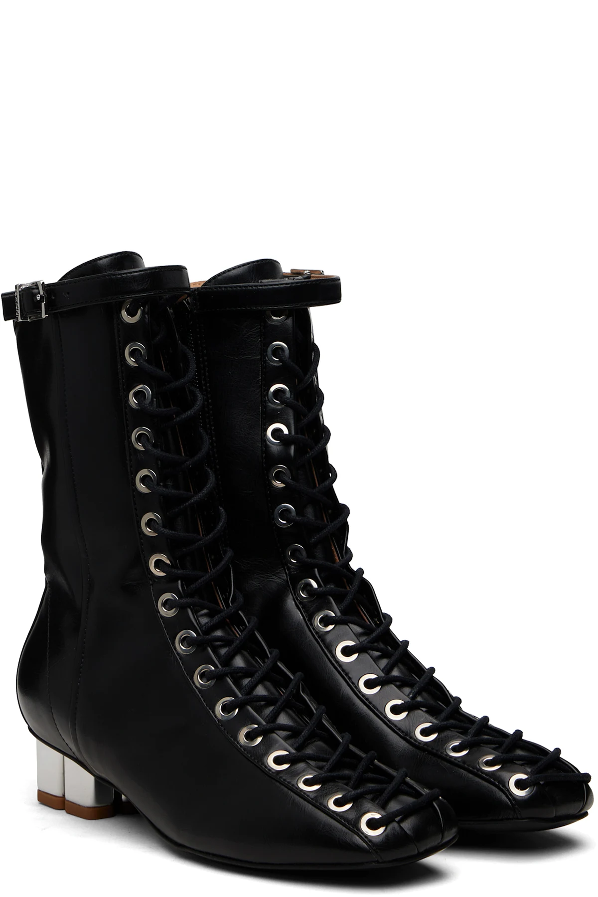 Ankle-high Oleatex™ buffed faux-leather boots.