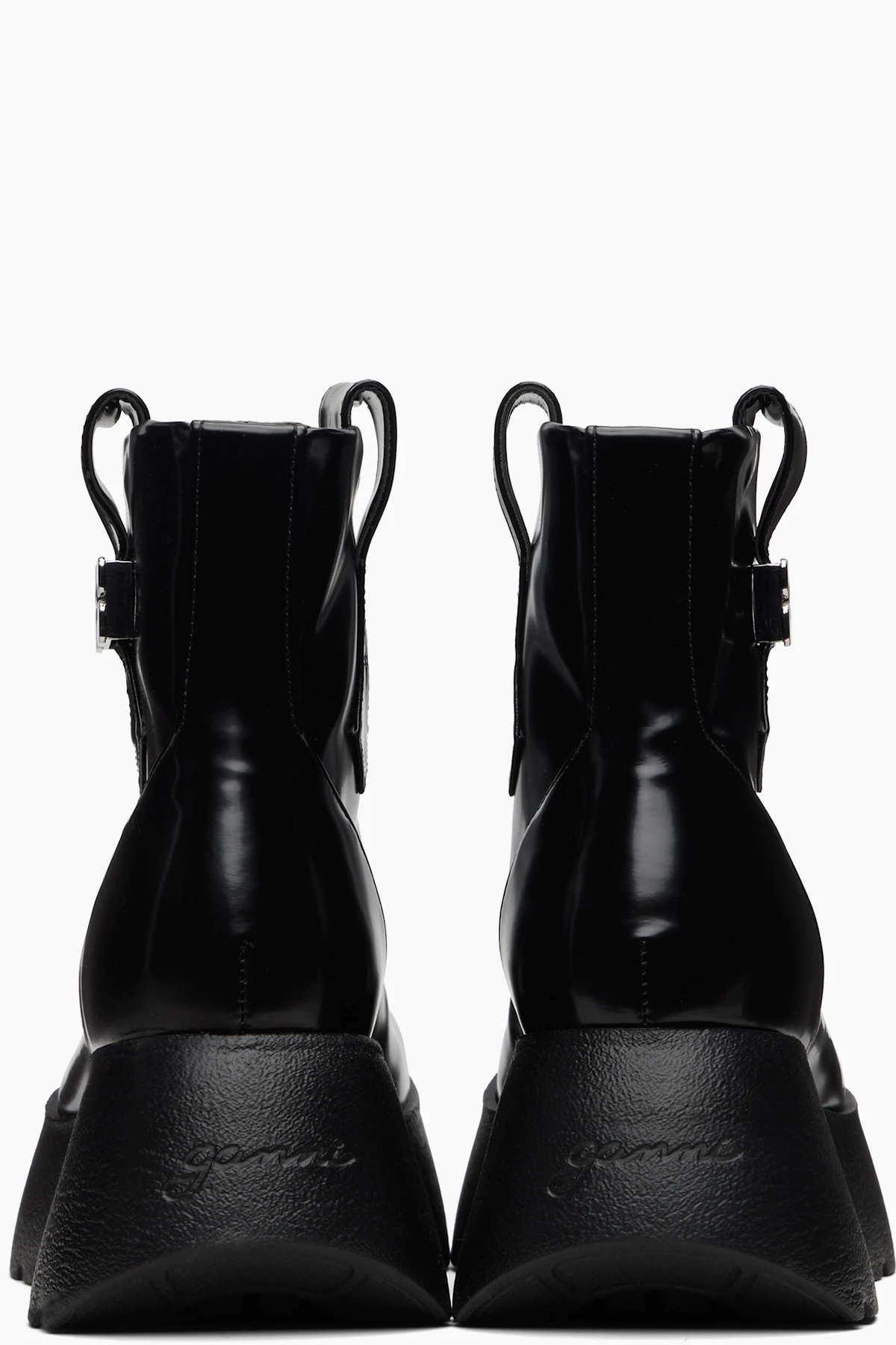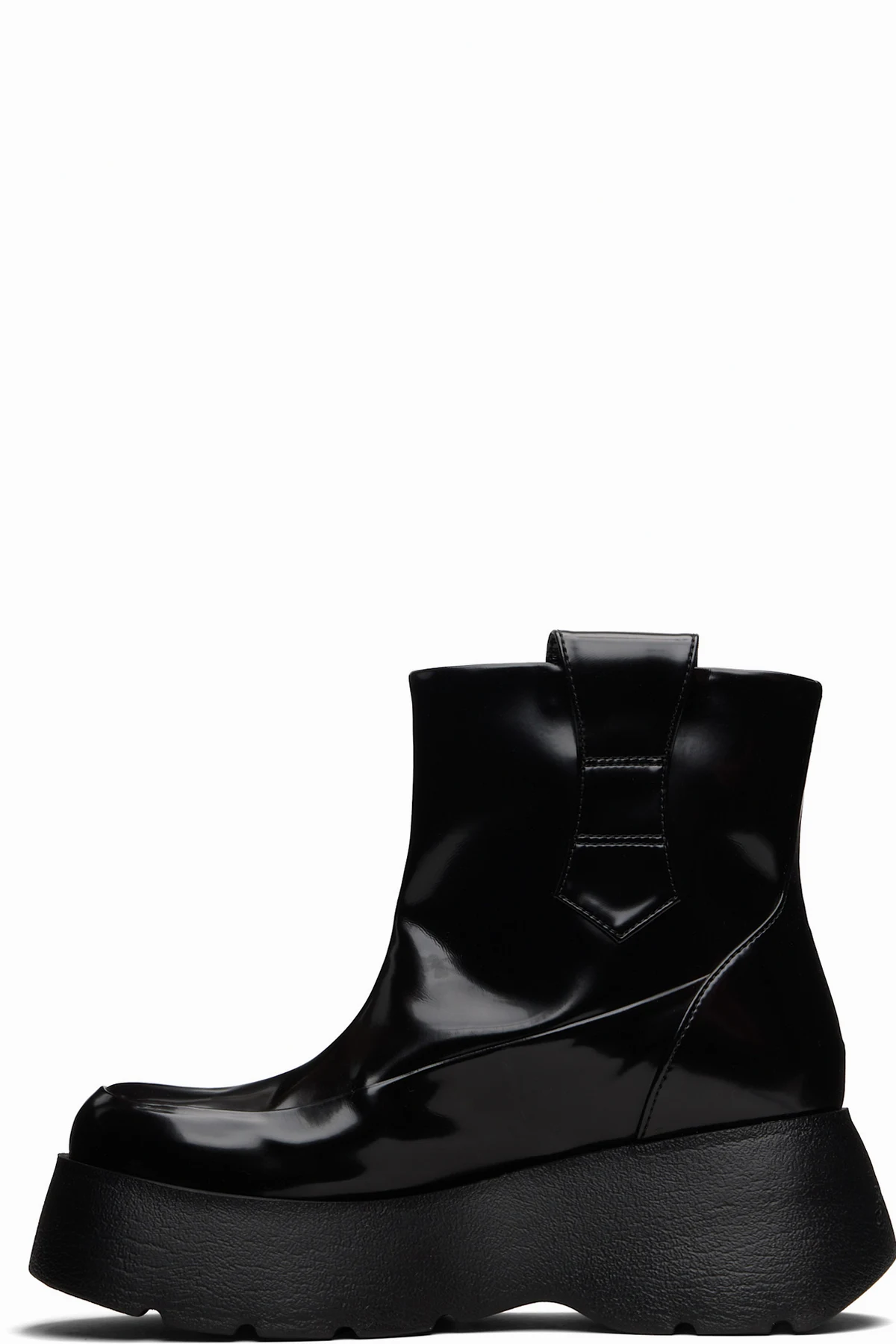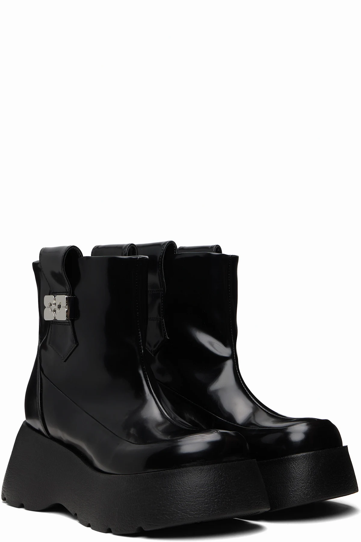 Ankle-high patent faux-leather boots.