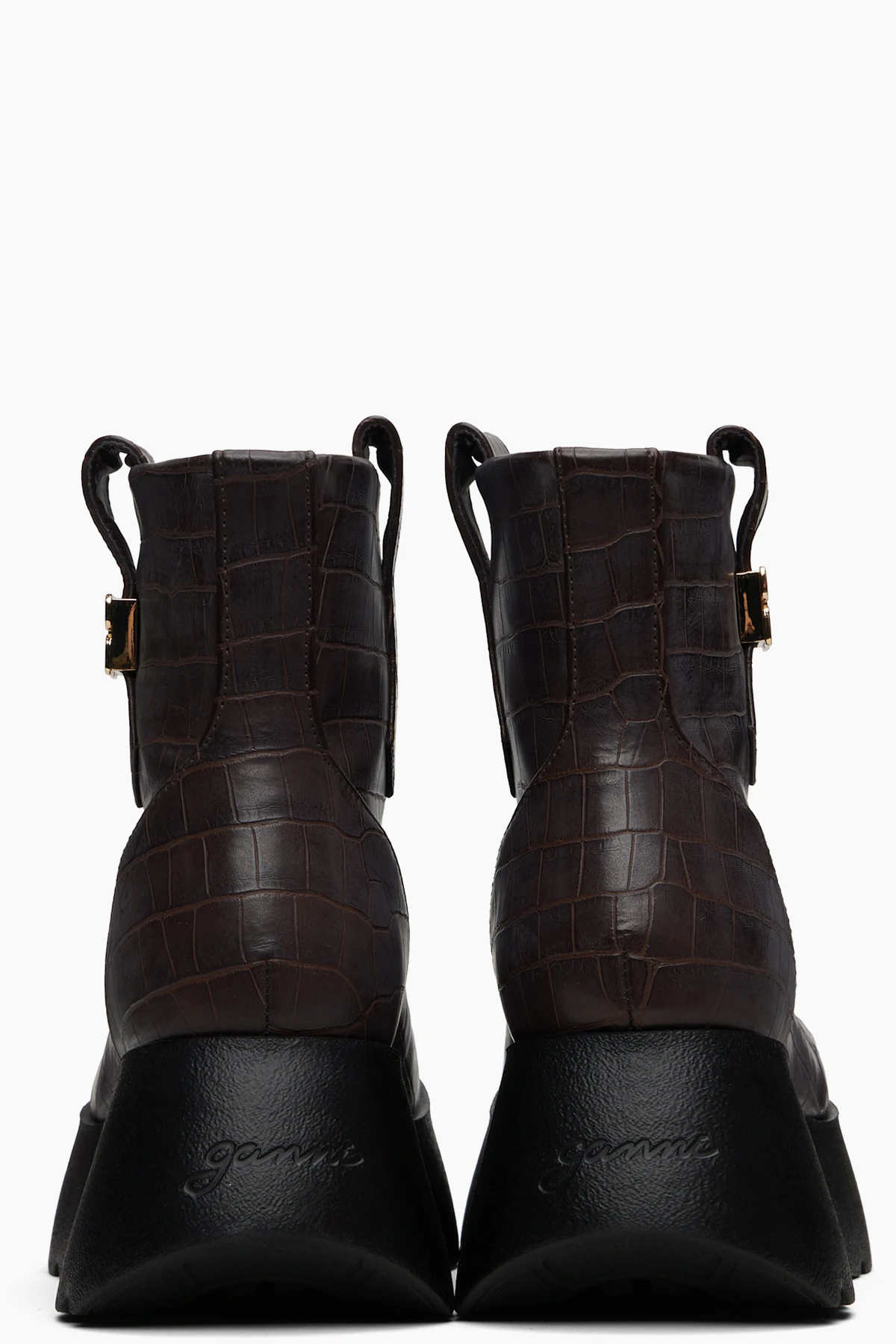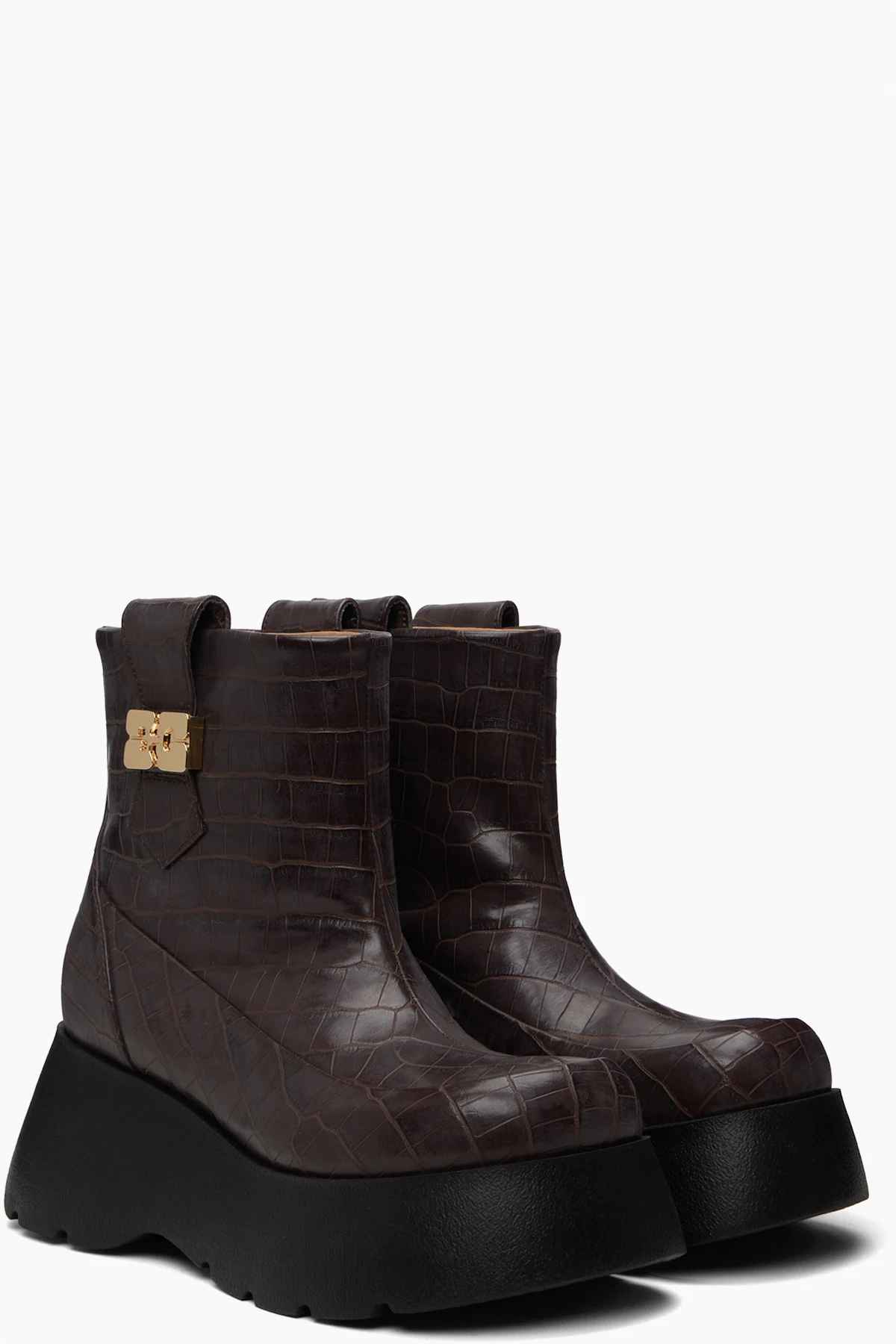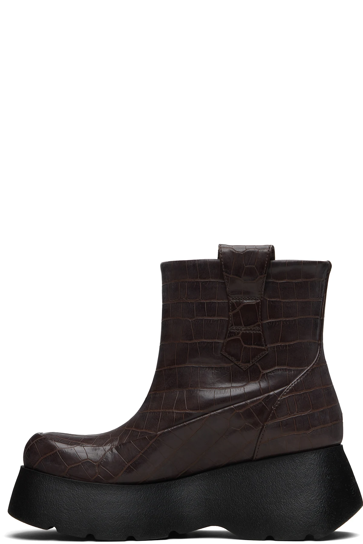 Ankle-high croc-embossed faux-leather boots.