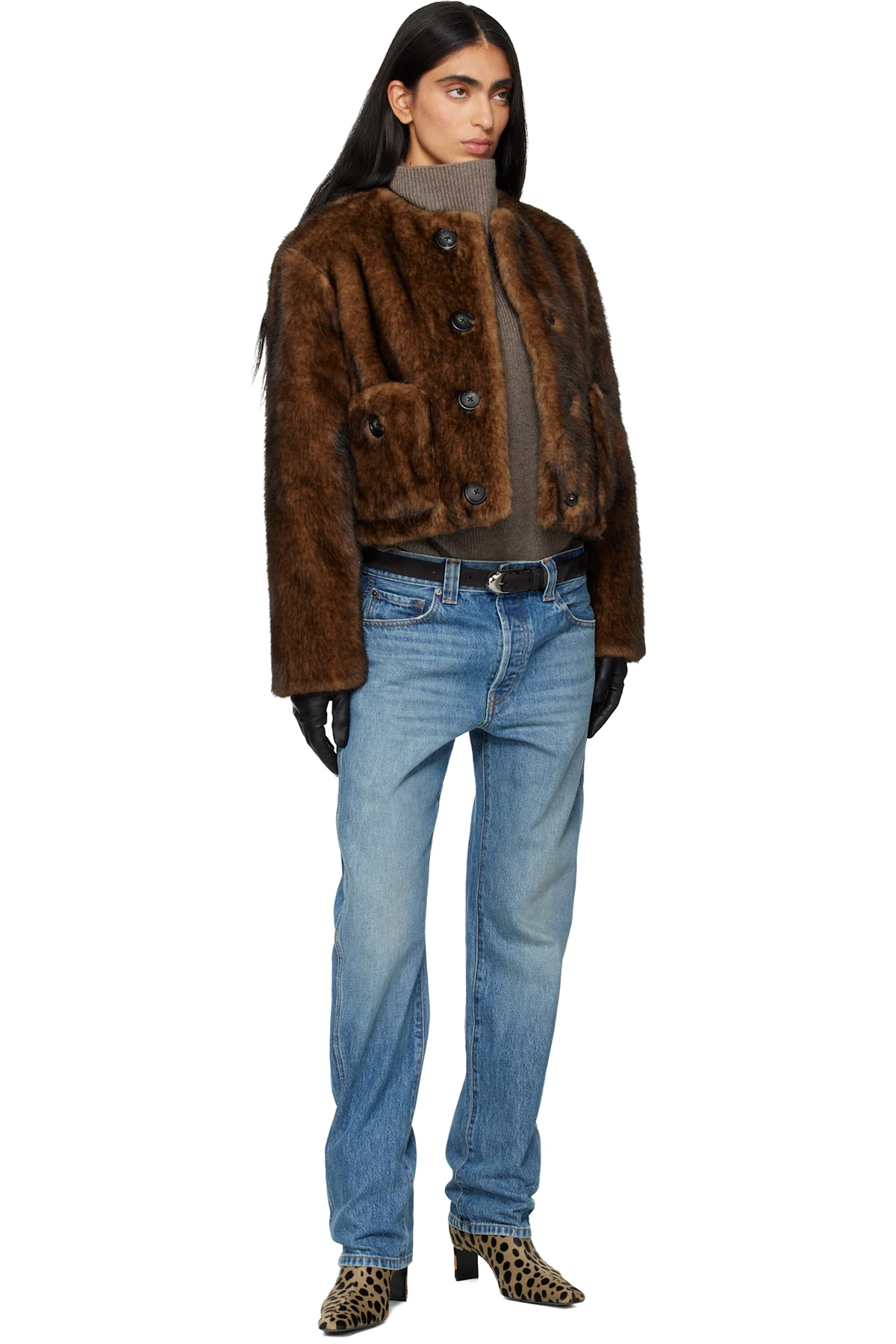 Ankle-high calf-hair boots.
