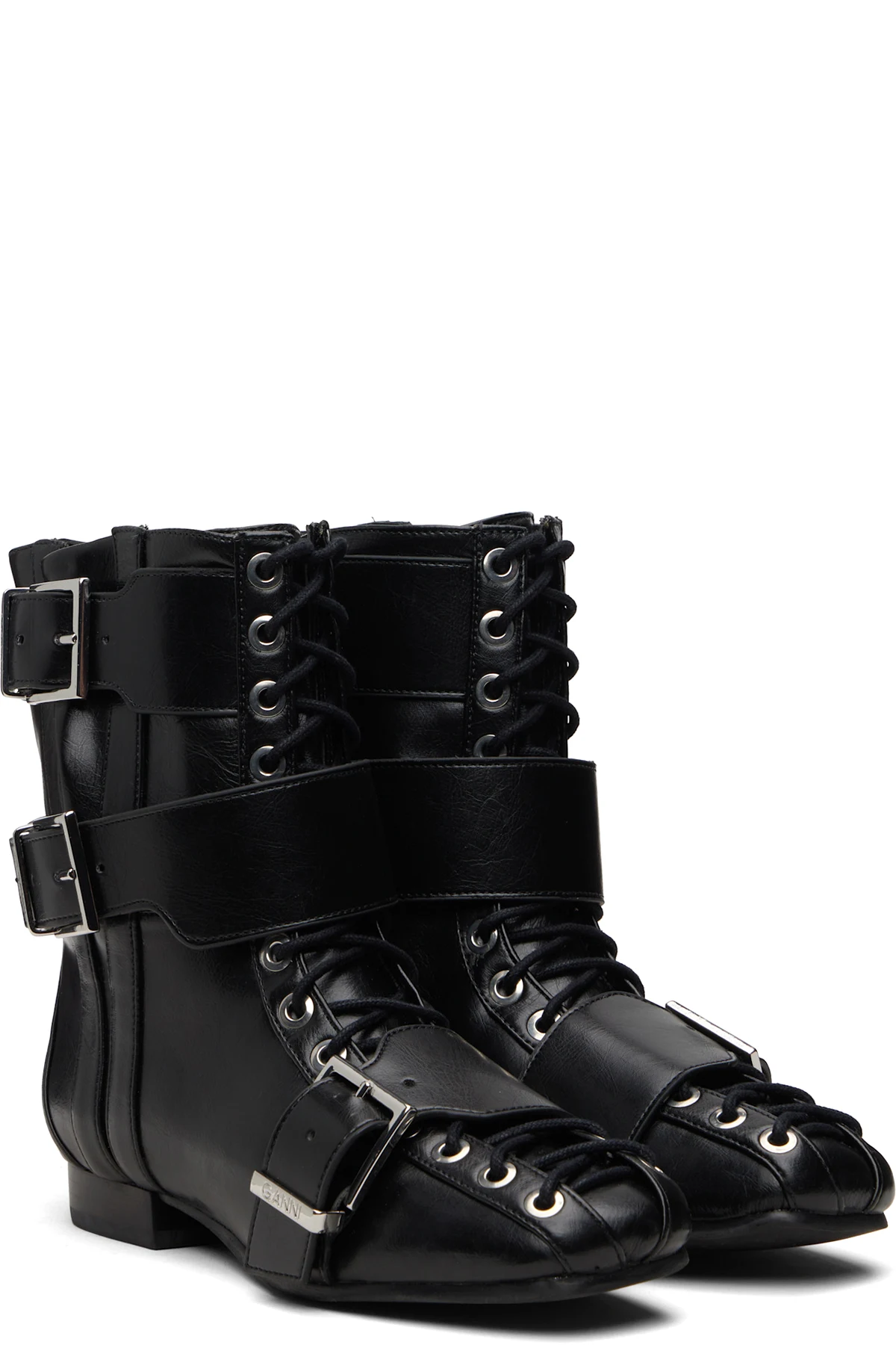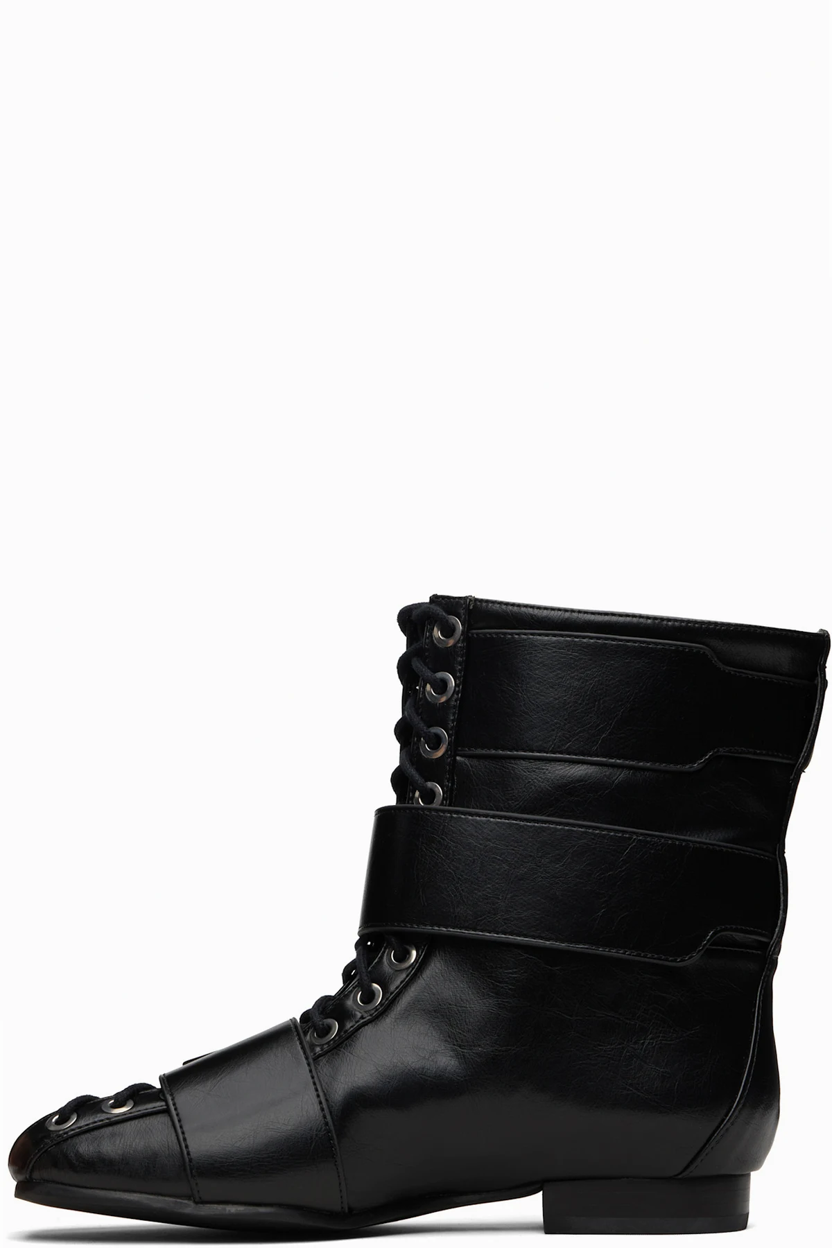 Ankle-high crinkled Oleatex® faux-leather boots.