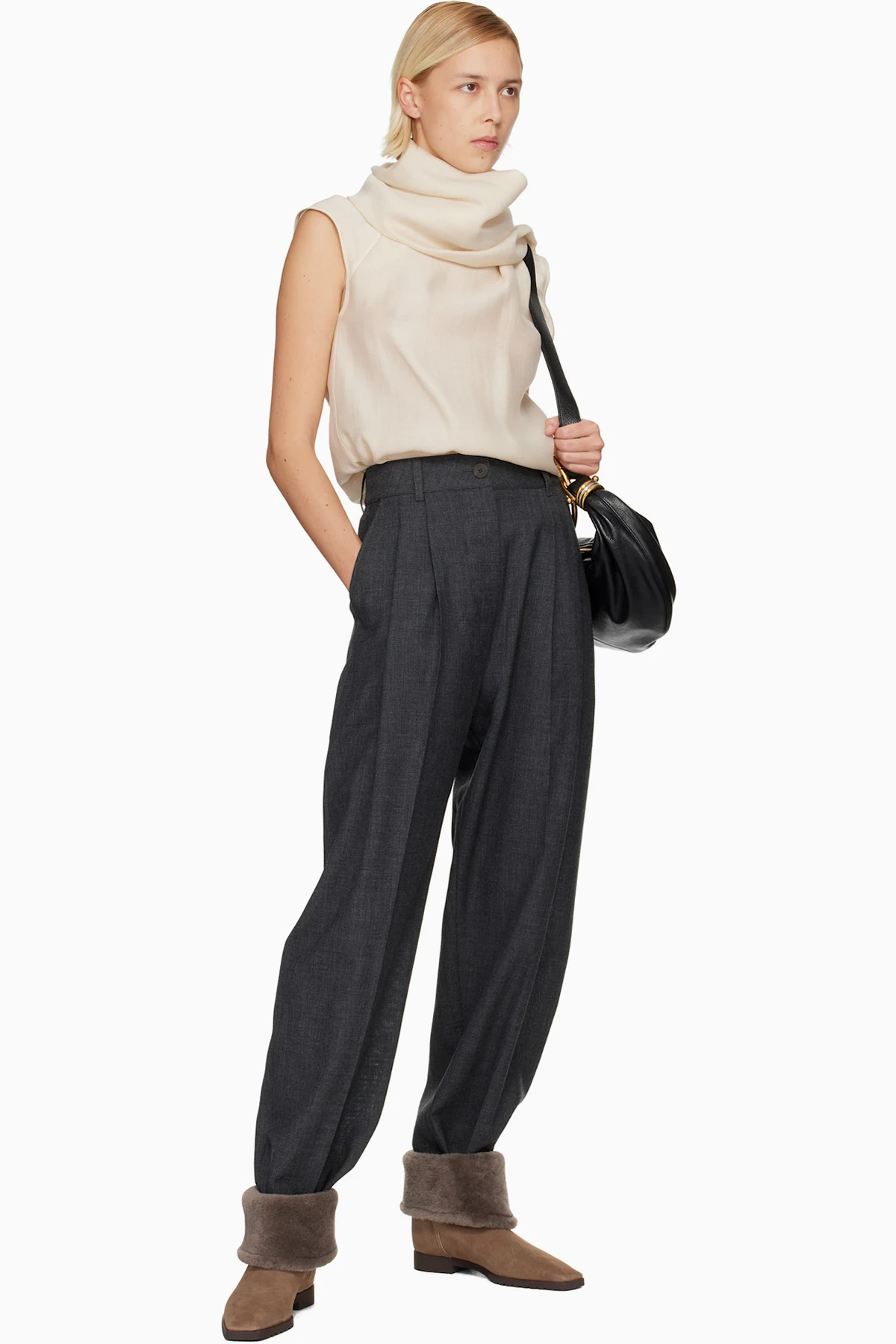 Beige Fold-Down Shearling Boots