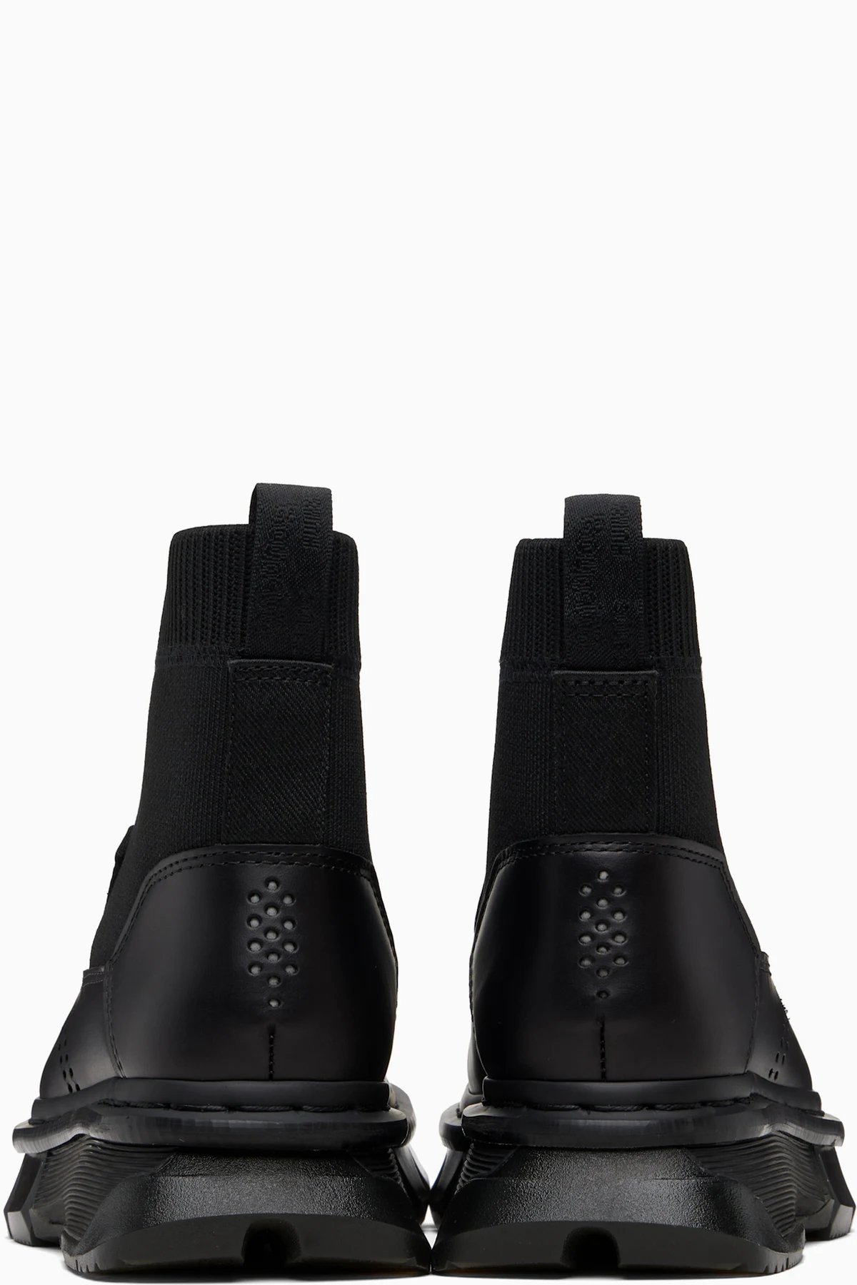 Ankle-high buffed leather and knit boots.
