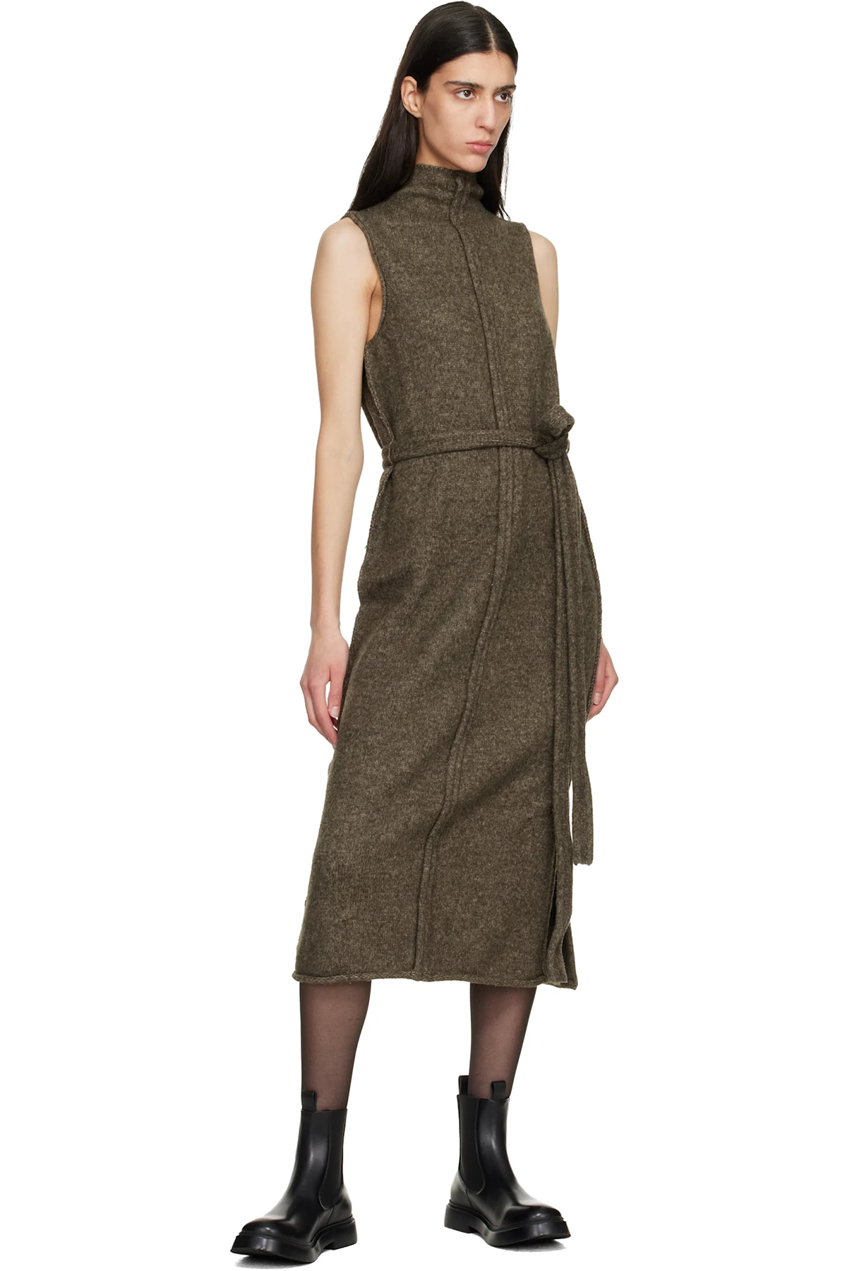 Ankle-high buffed calfskin Chelsea boots.