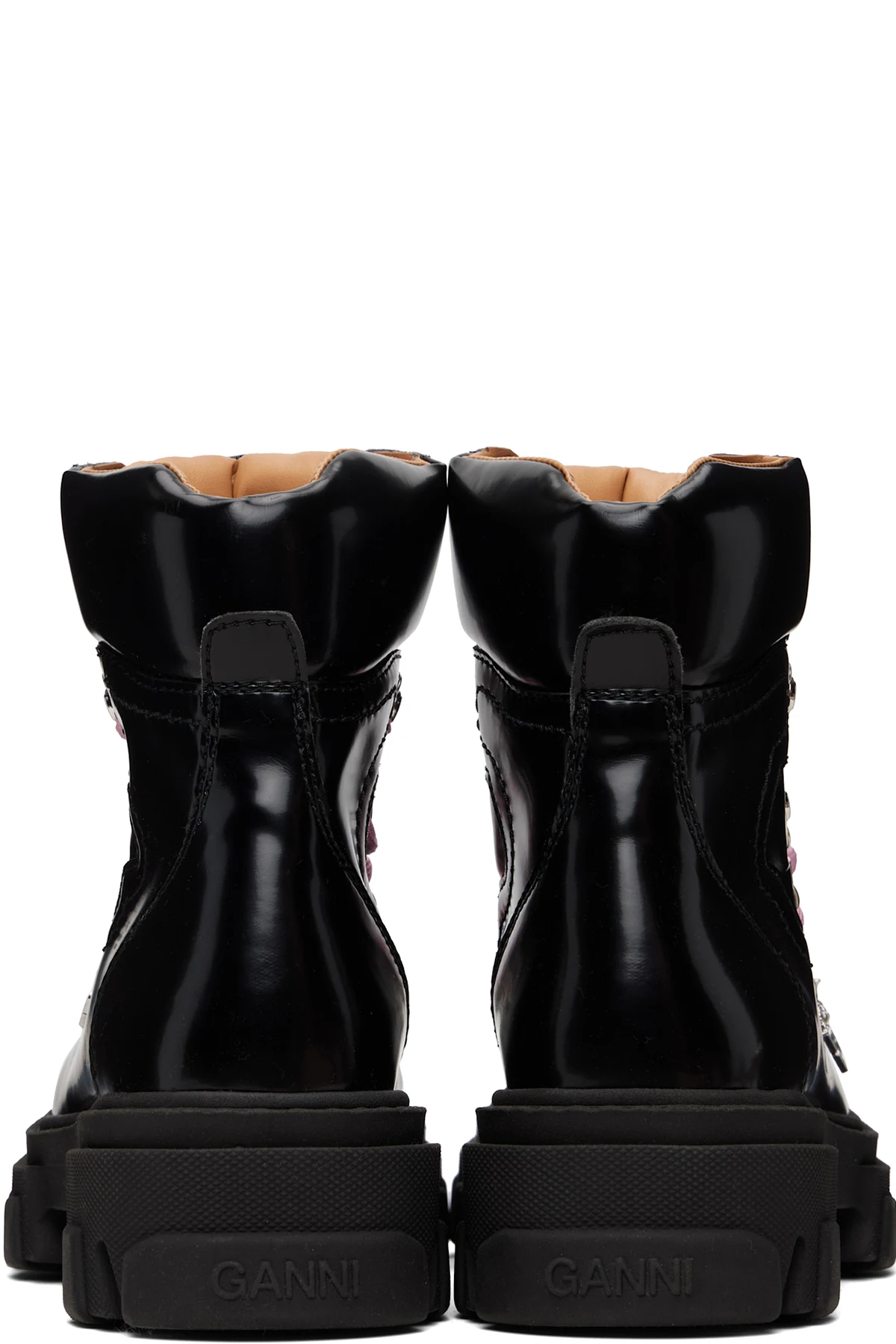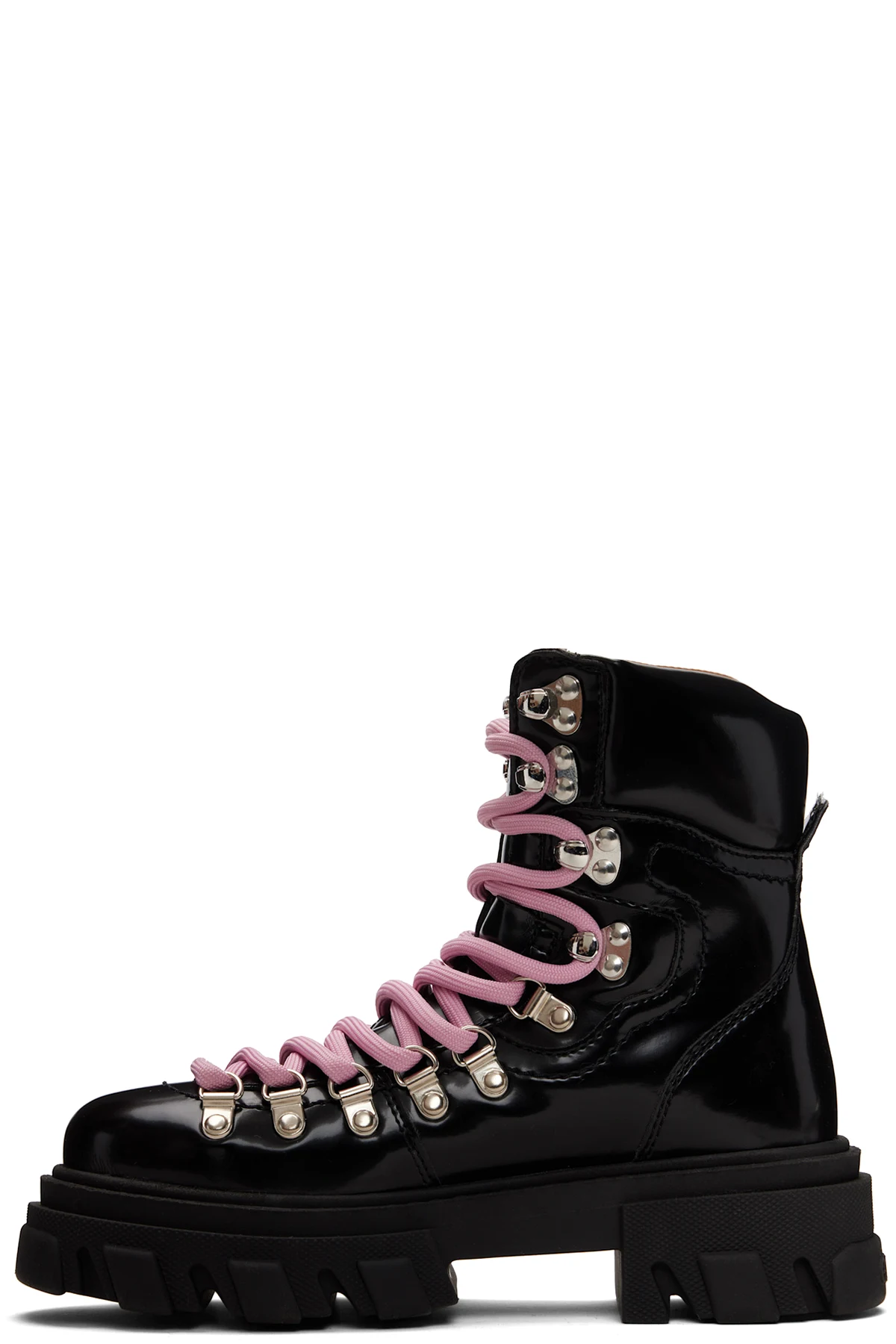 Ankle-high polished Oleatex™ faux-leather boots.