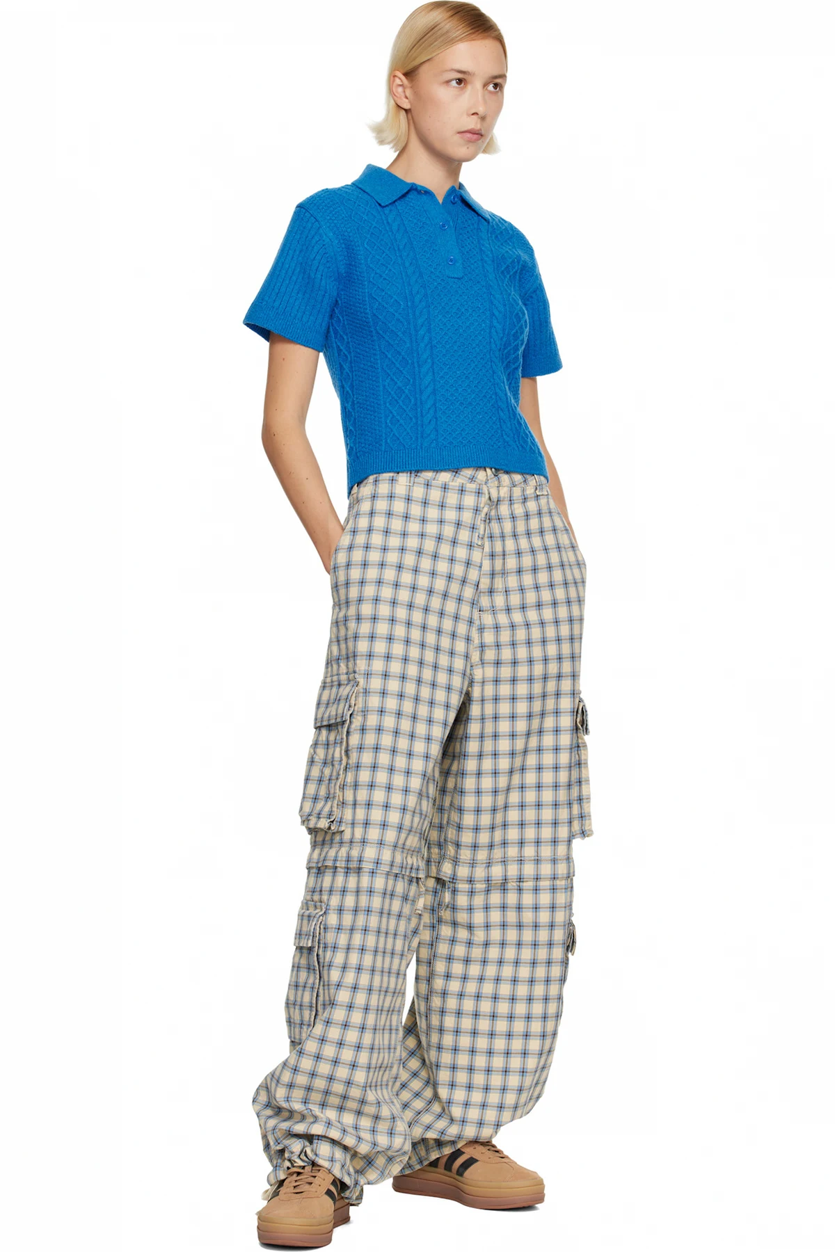 Low-top suede sneakers.