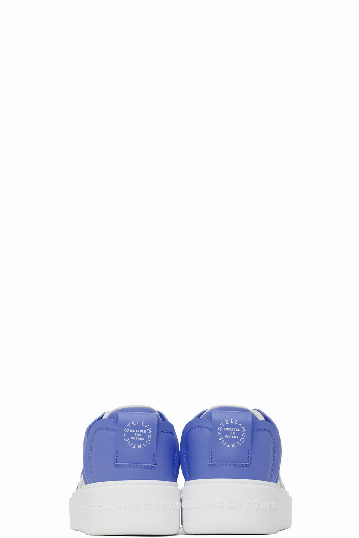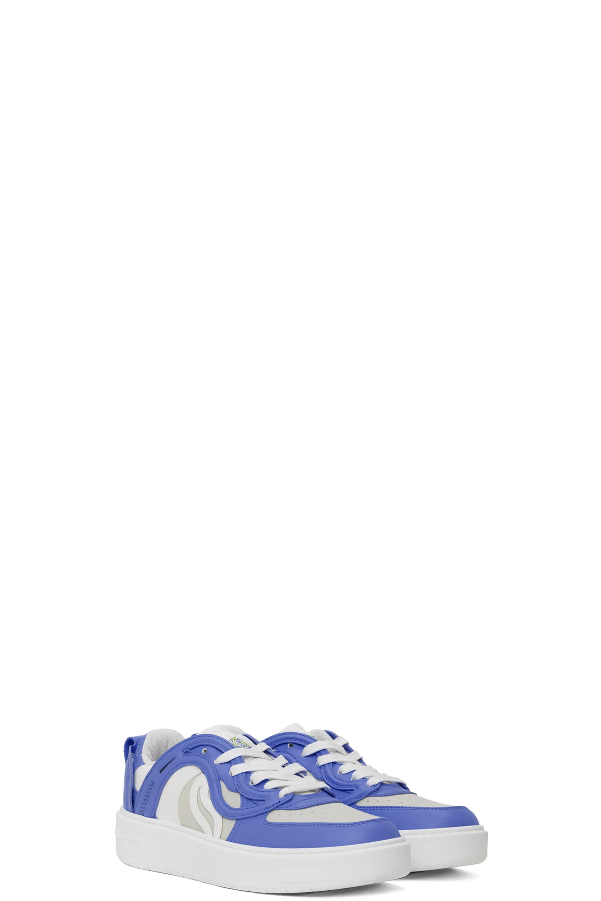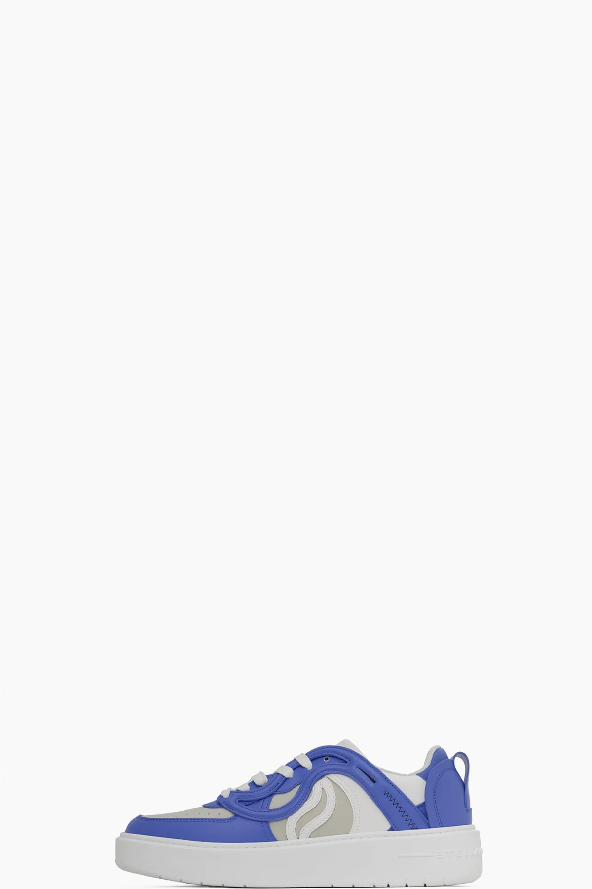 Low-top paneled grained faux-leather and faux-suede sneakers in white and blue.
