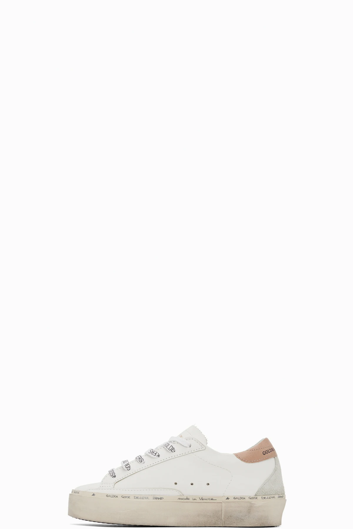 Handcrafted low-top buffed leather sneakers in white. Smudging throughout.