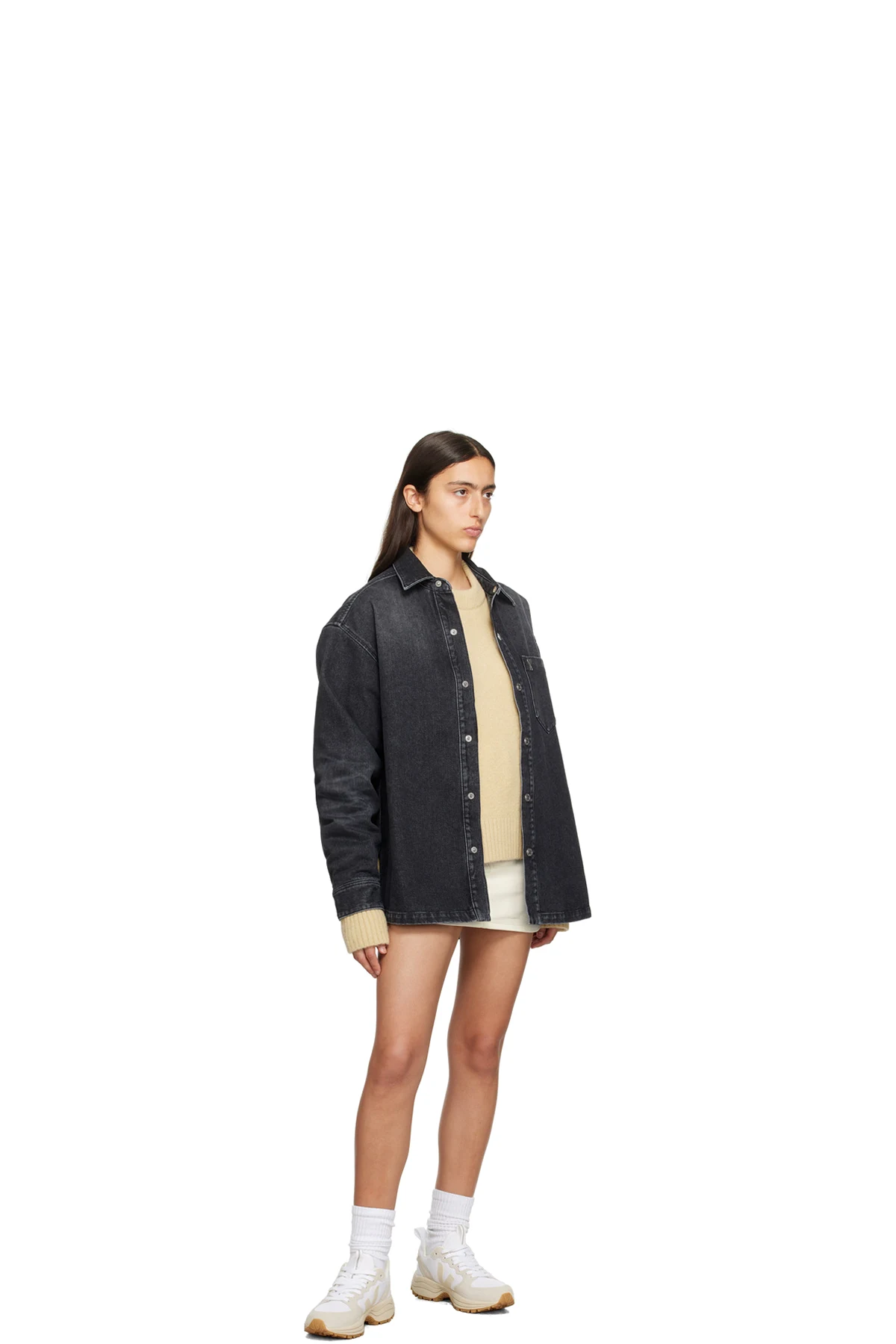 Low-top paneled recycled polyester mesh and suede sneakers in white and beige.