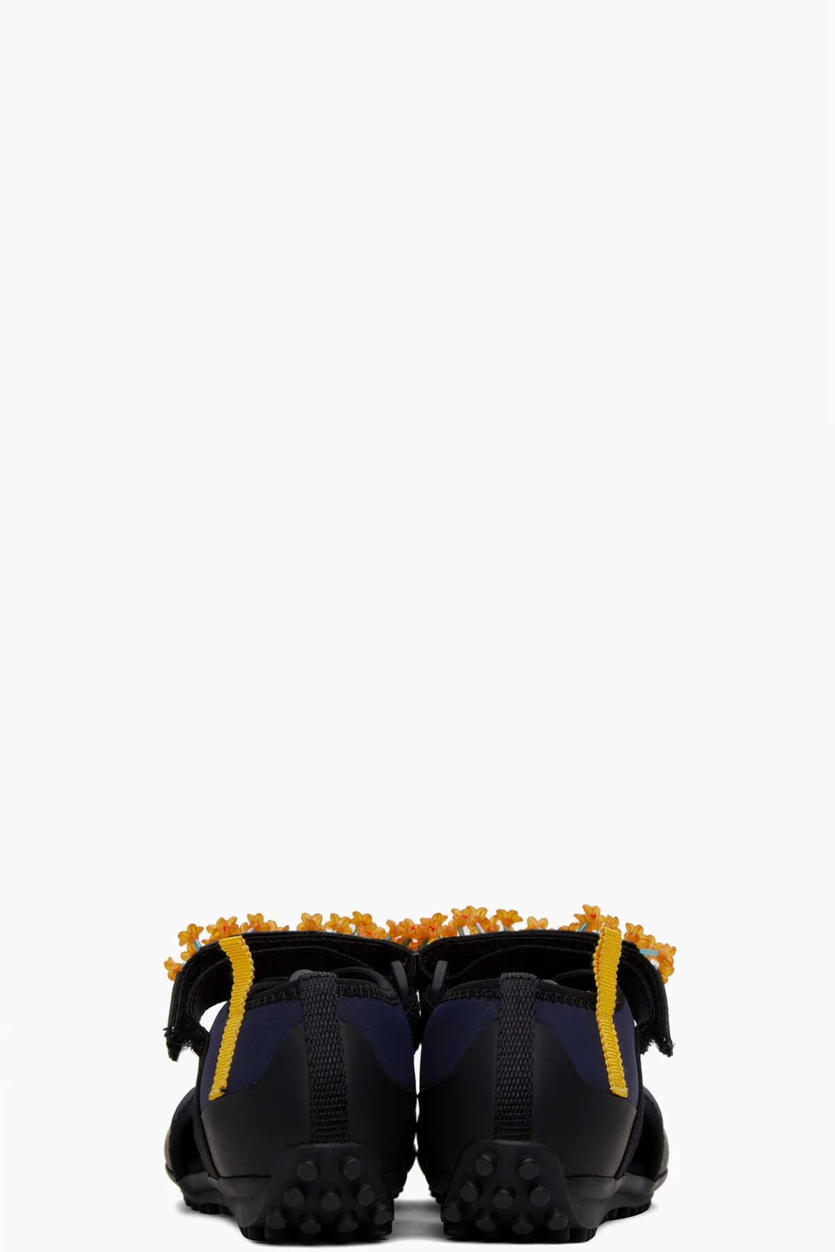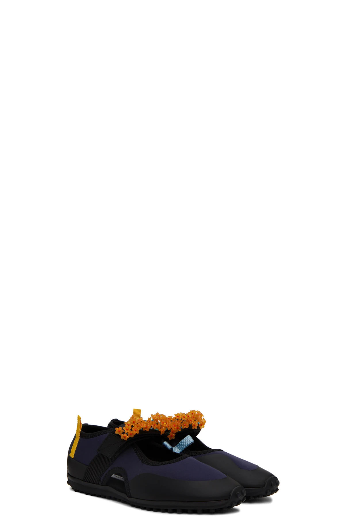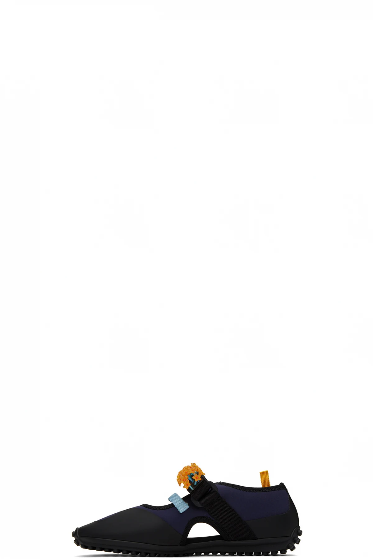 Low-top paneled neoprene and rubber sneakers in navy and black.