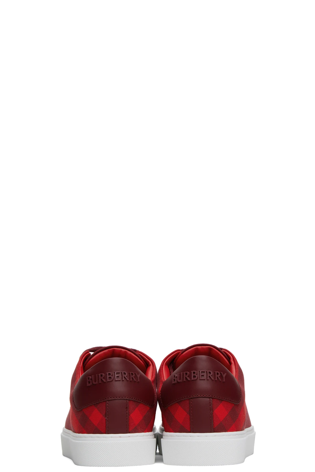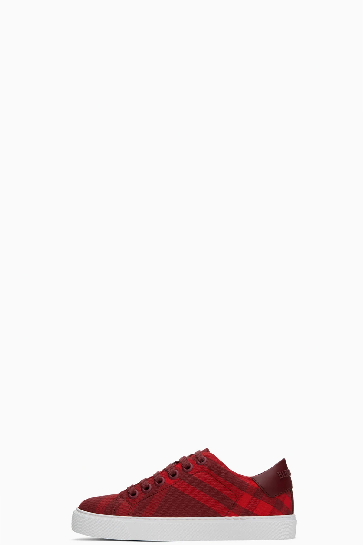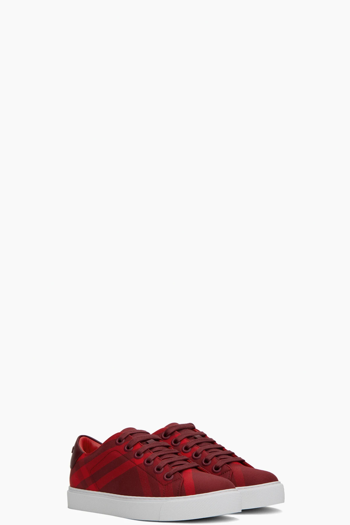 Low-top cotton canvas sneakers in tones of red. Check pattern printed throughout.