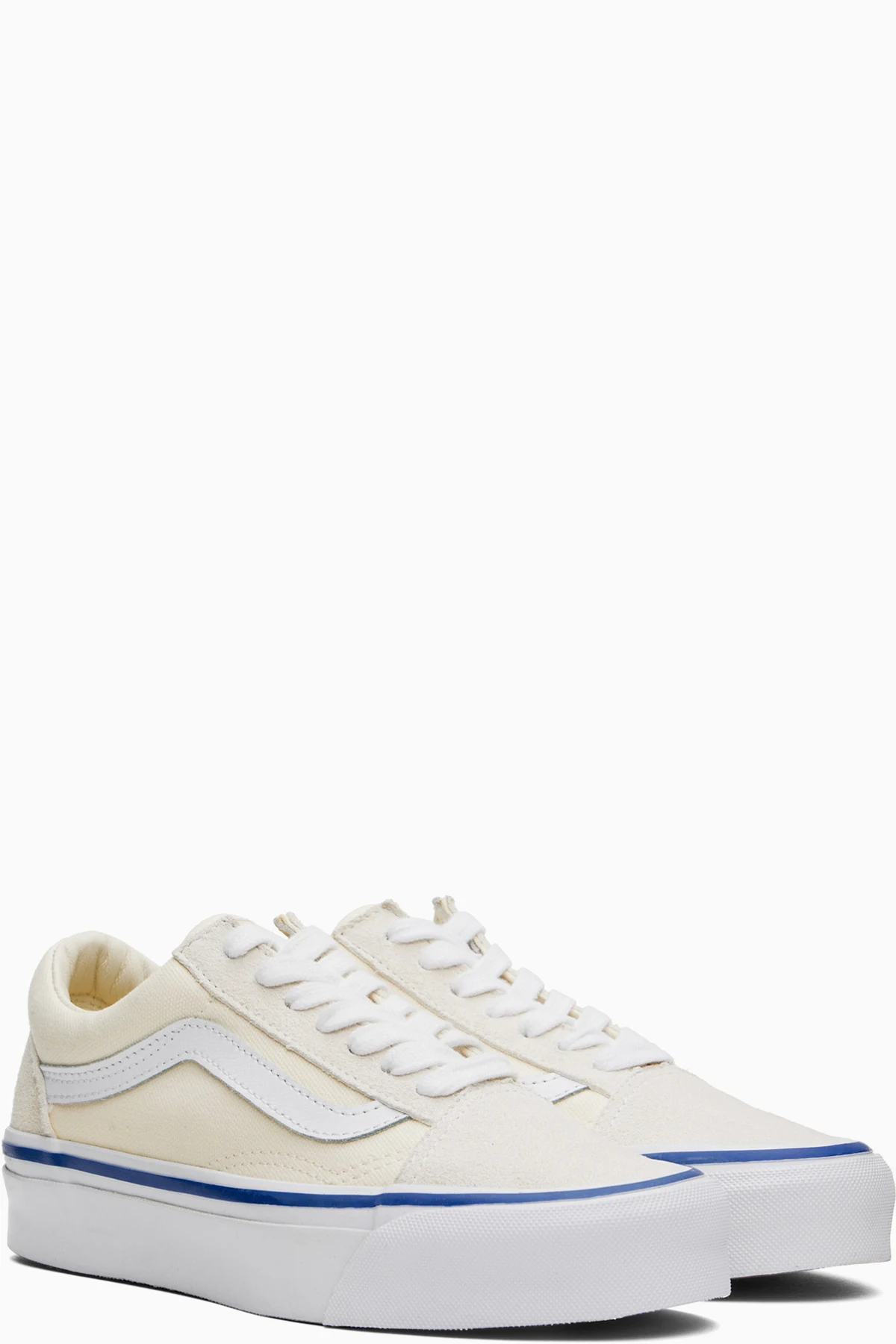 Low-top 8 oz canvas and suede sneakers in off-white.