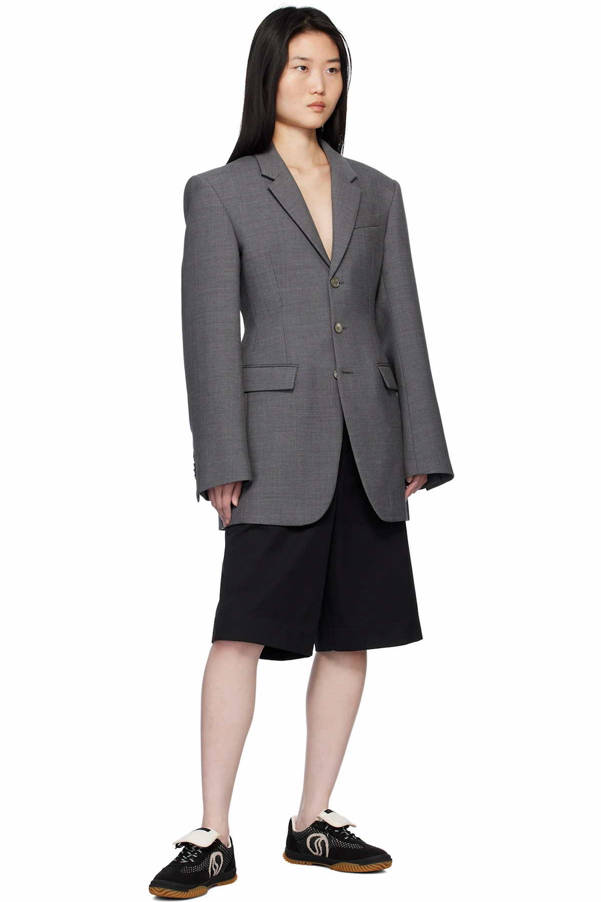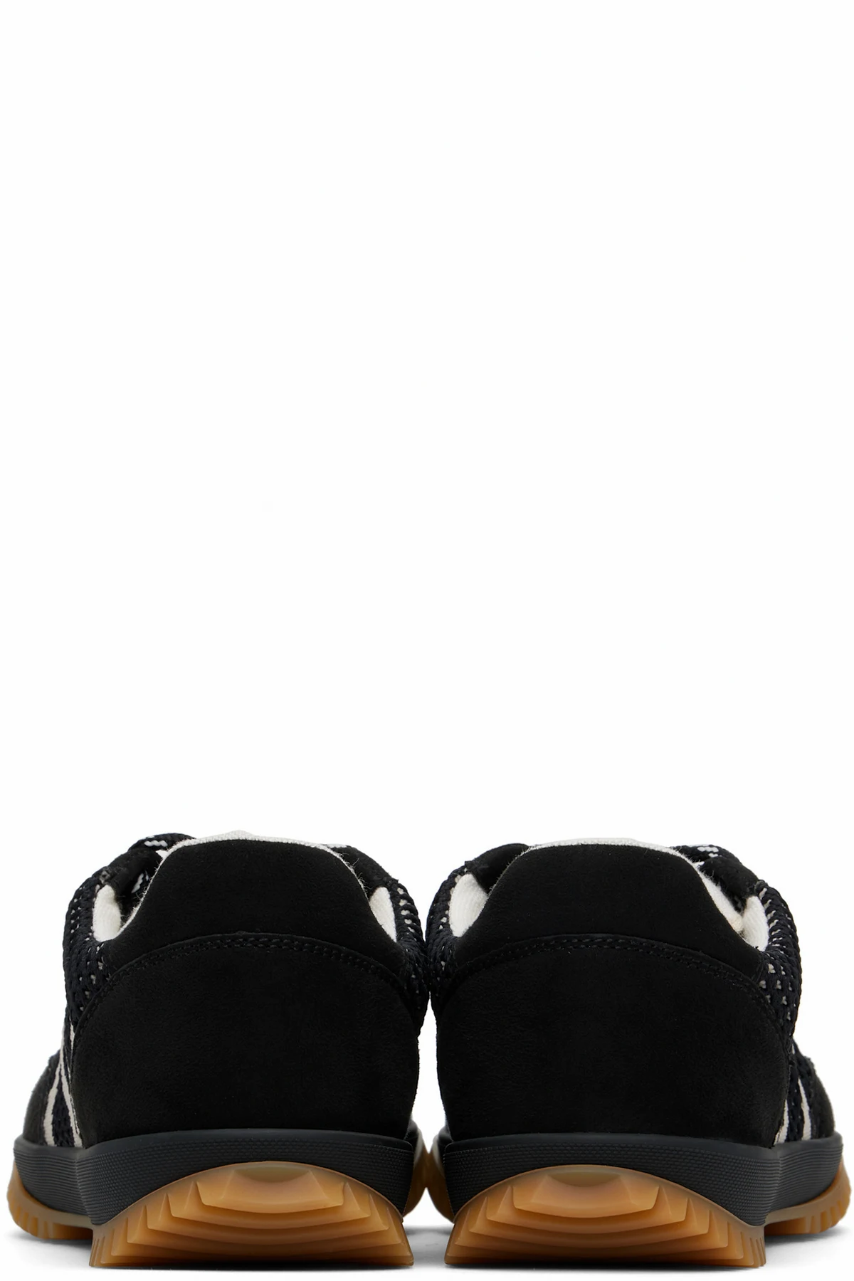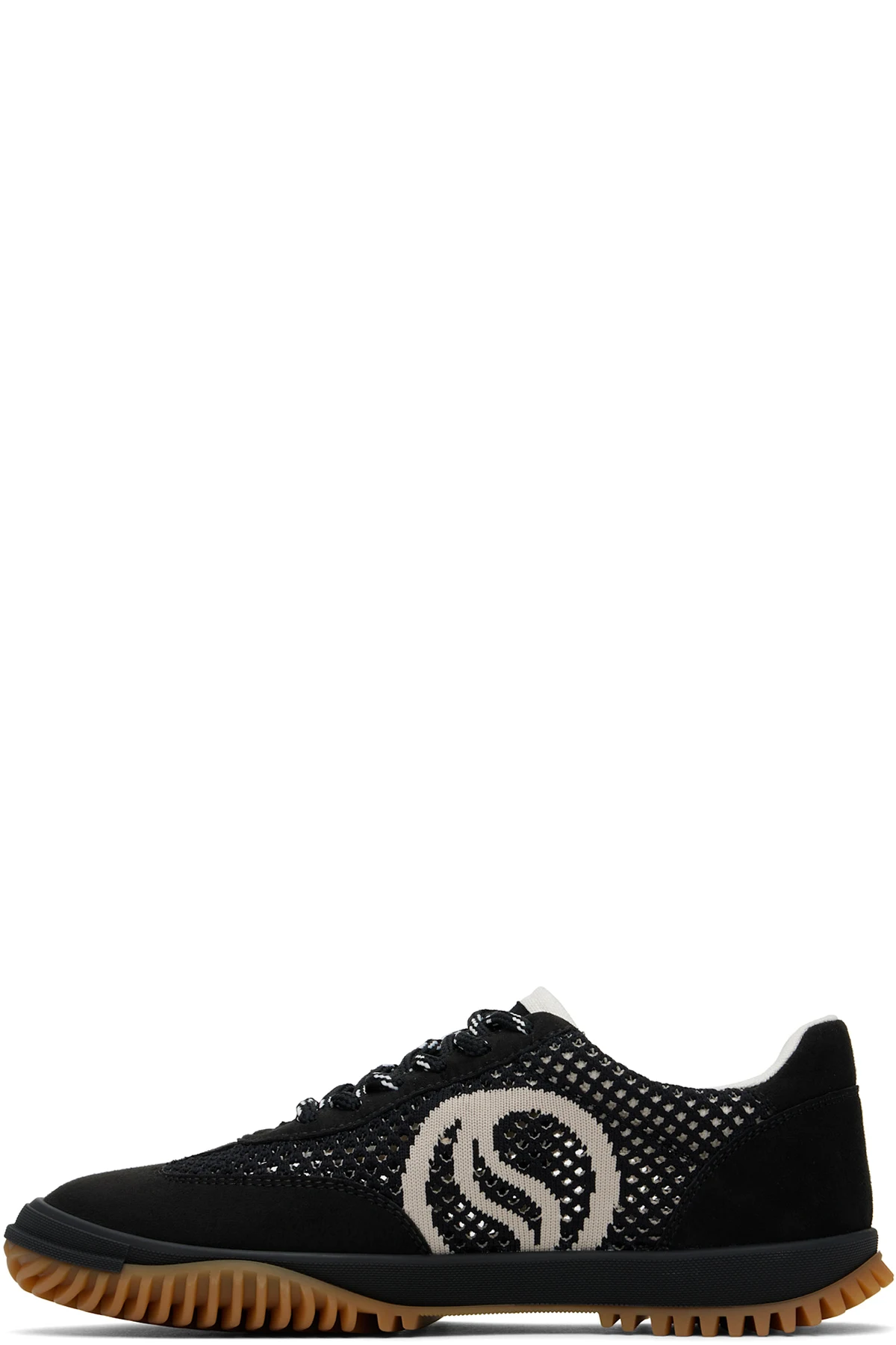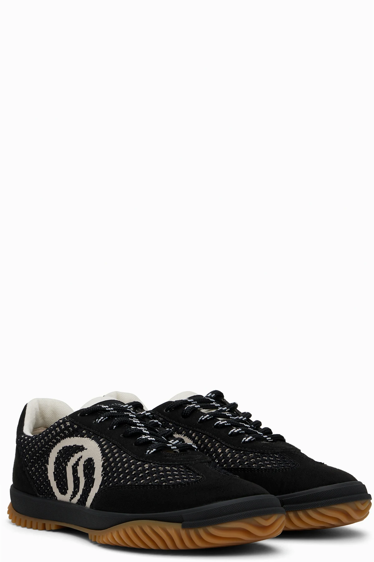 Low-top faux-suede and breathable mesh sneakers in black and gray.