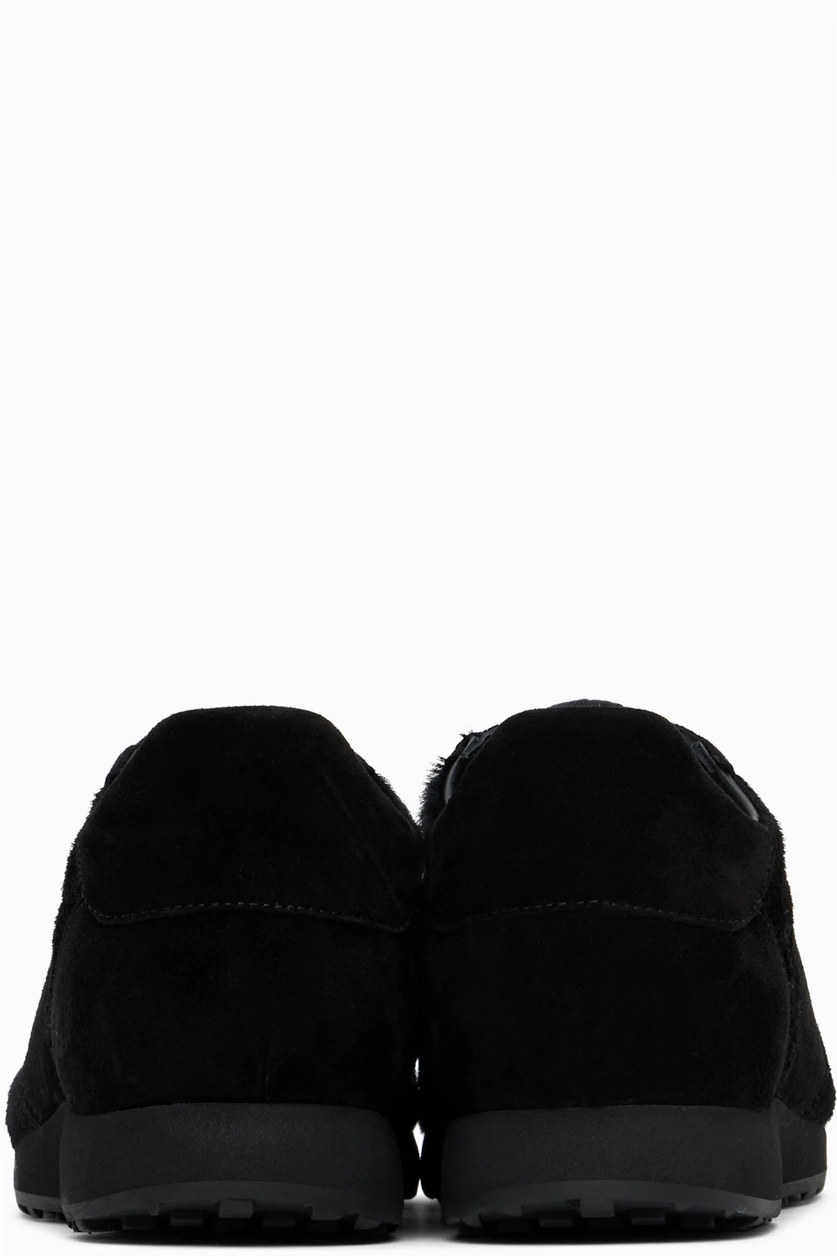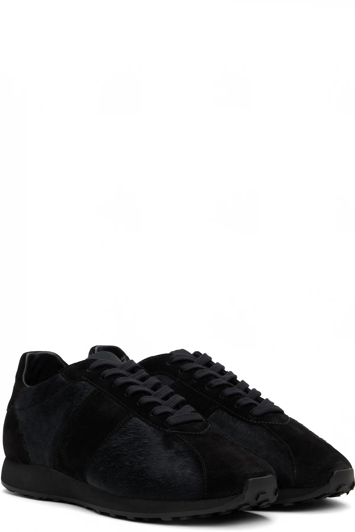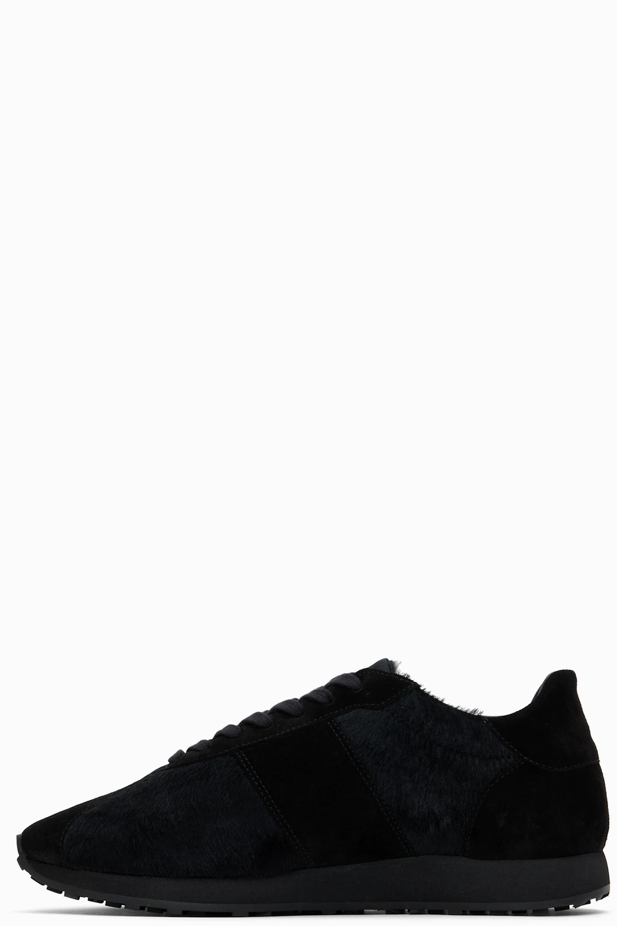 Low-top velour, hair-on leather, and nylon canvas sneakers in black.