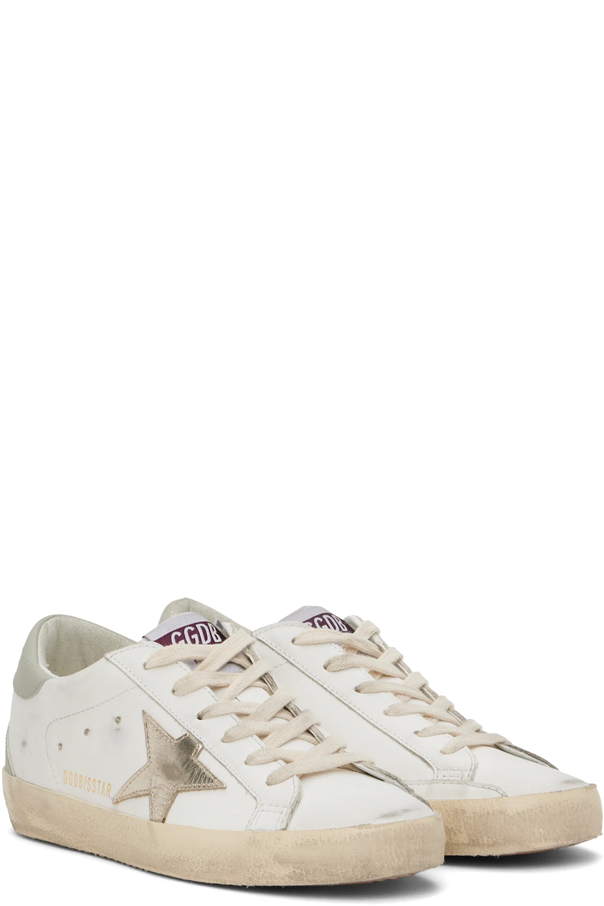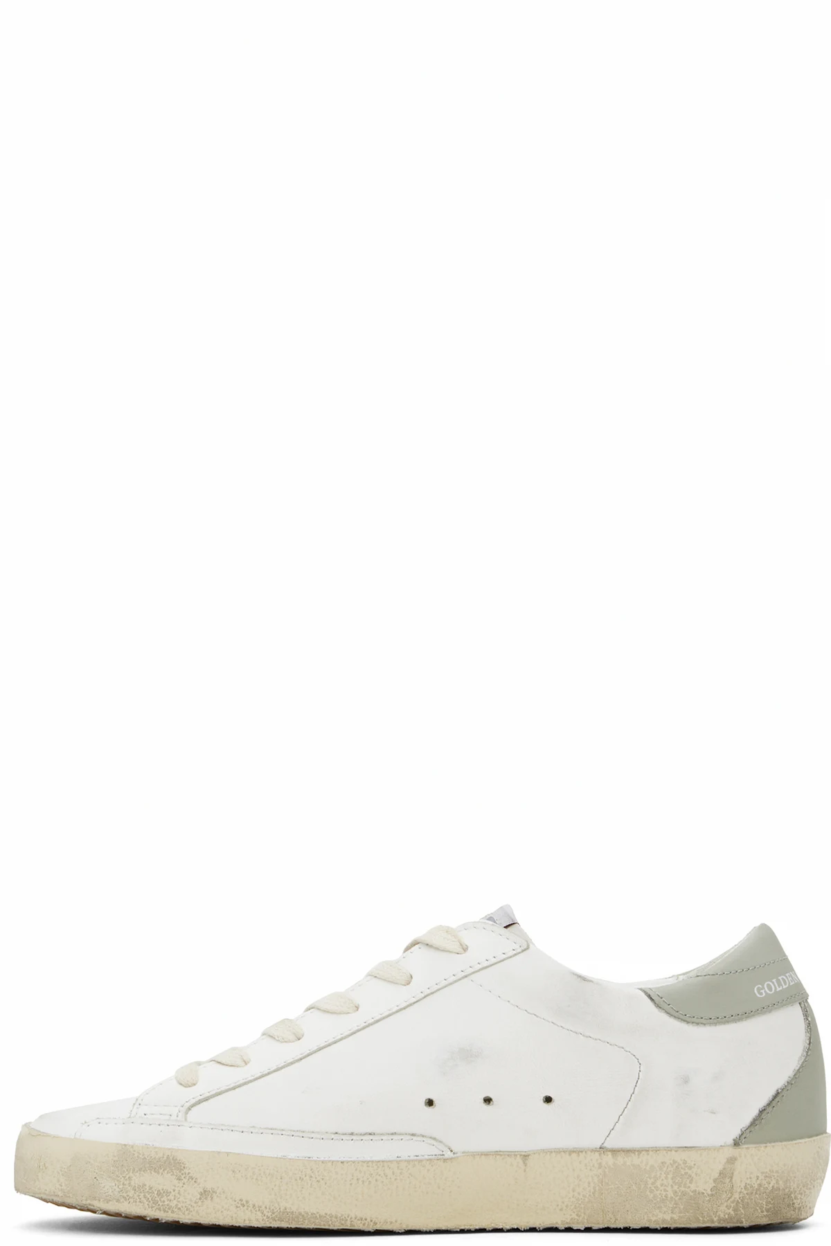 Handcrafted low-top buffed leather sneakers in white.