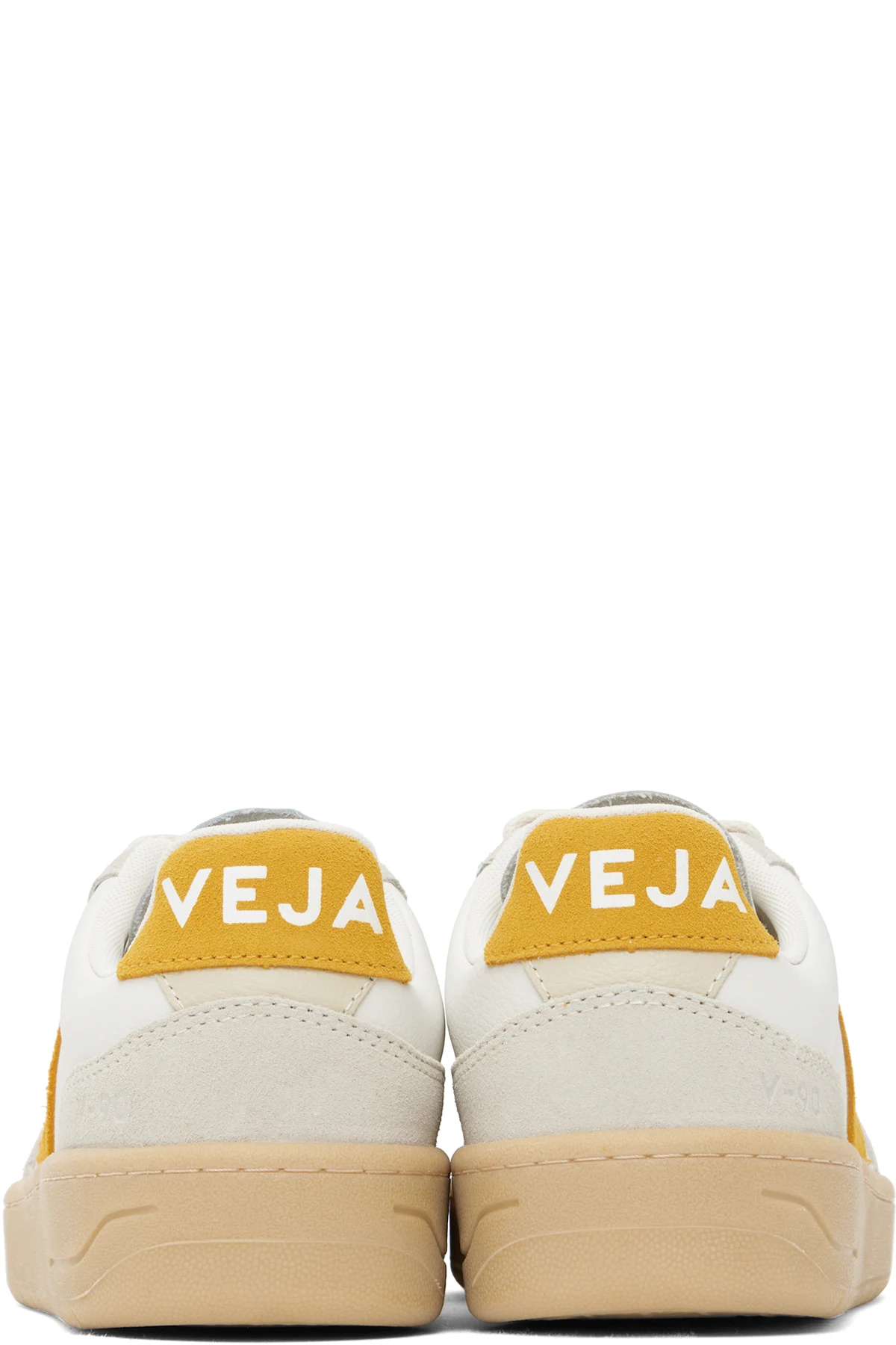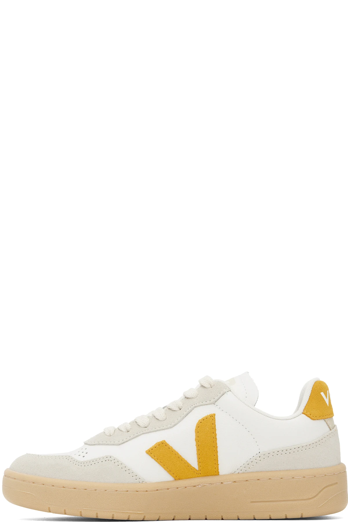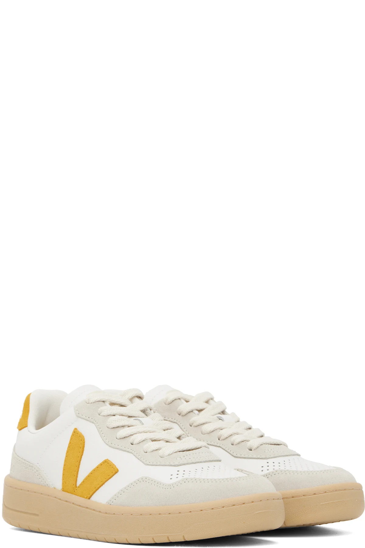 Low-top grained organic leather and suede sneakers in white.