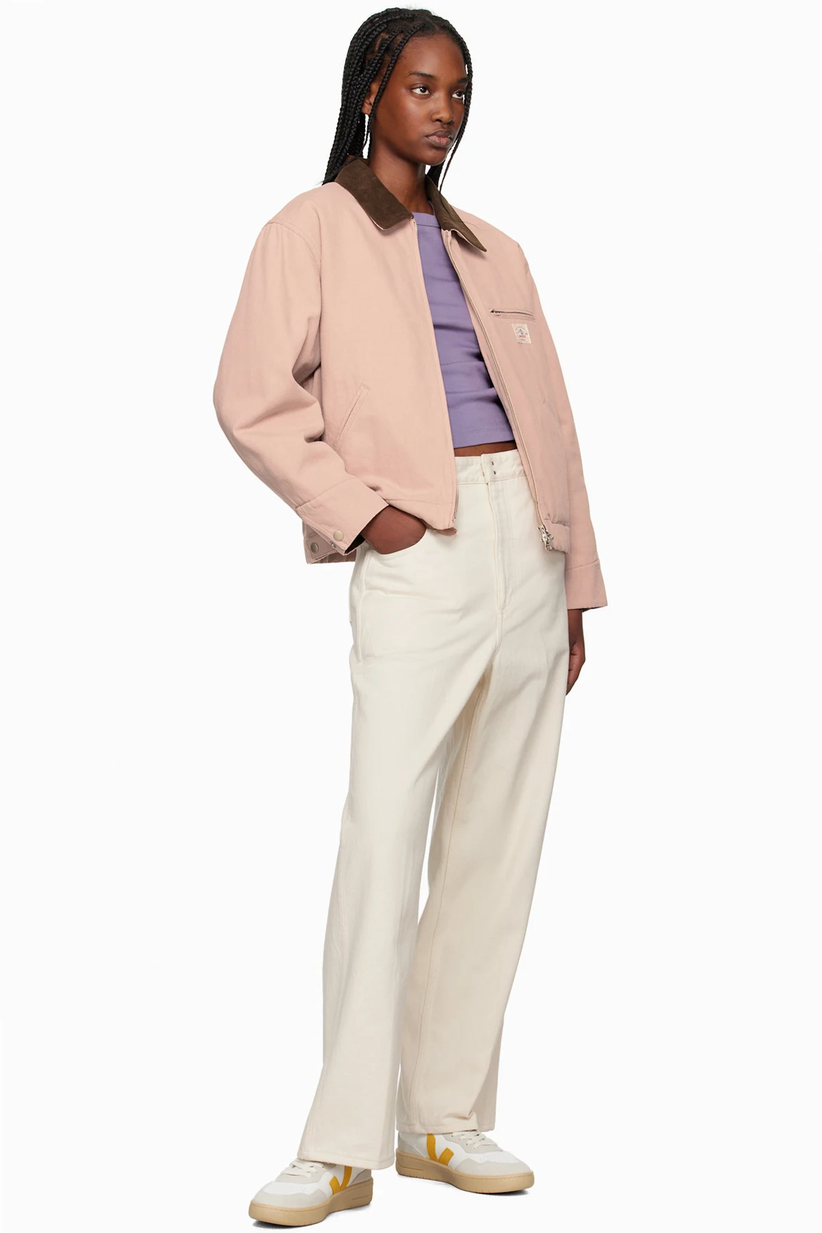 · Suede trim in off-white throughout
