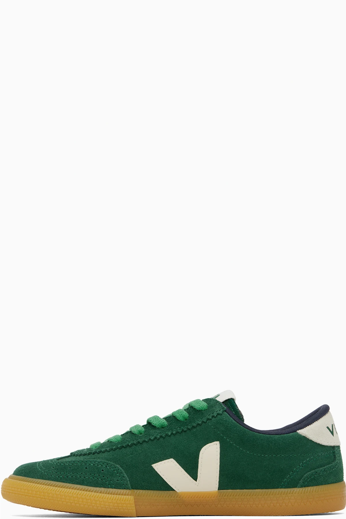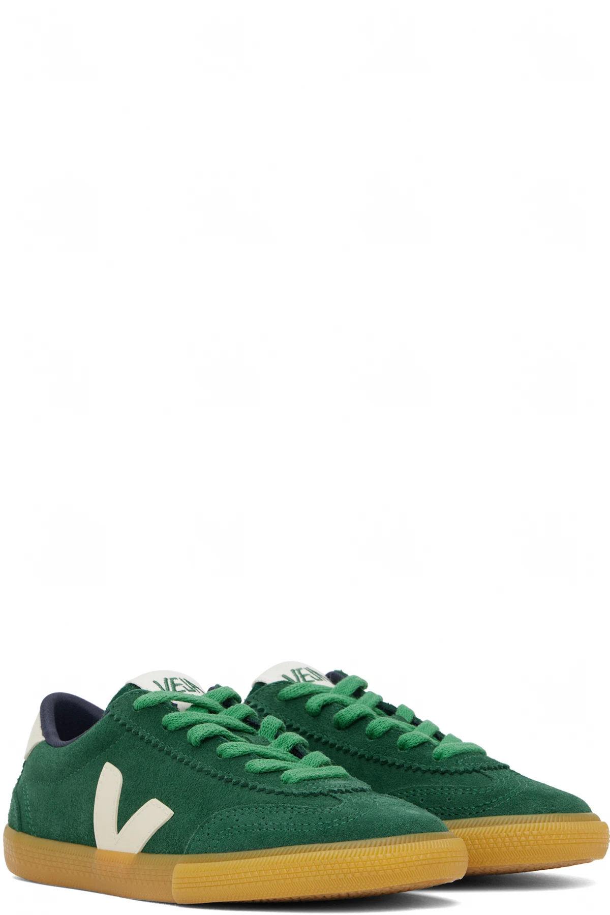 Low-top suede and ChromeFree buffed leather sneakers in green.