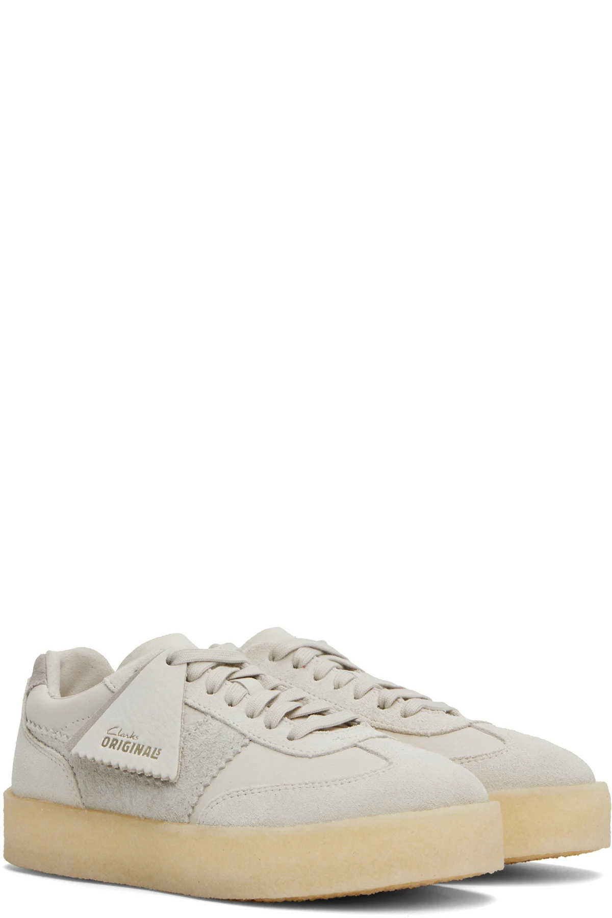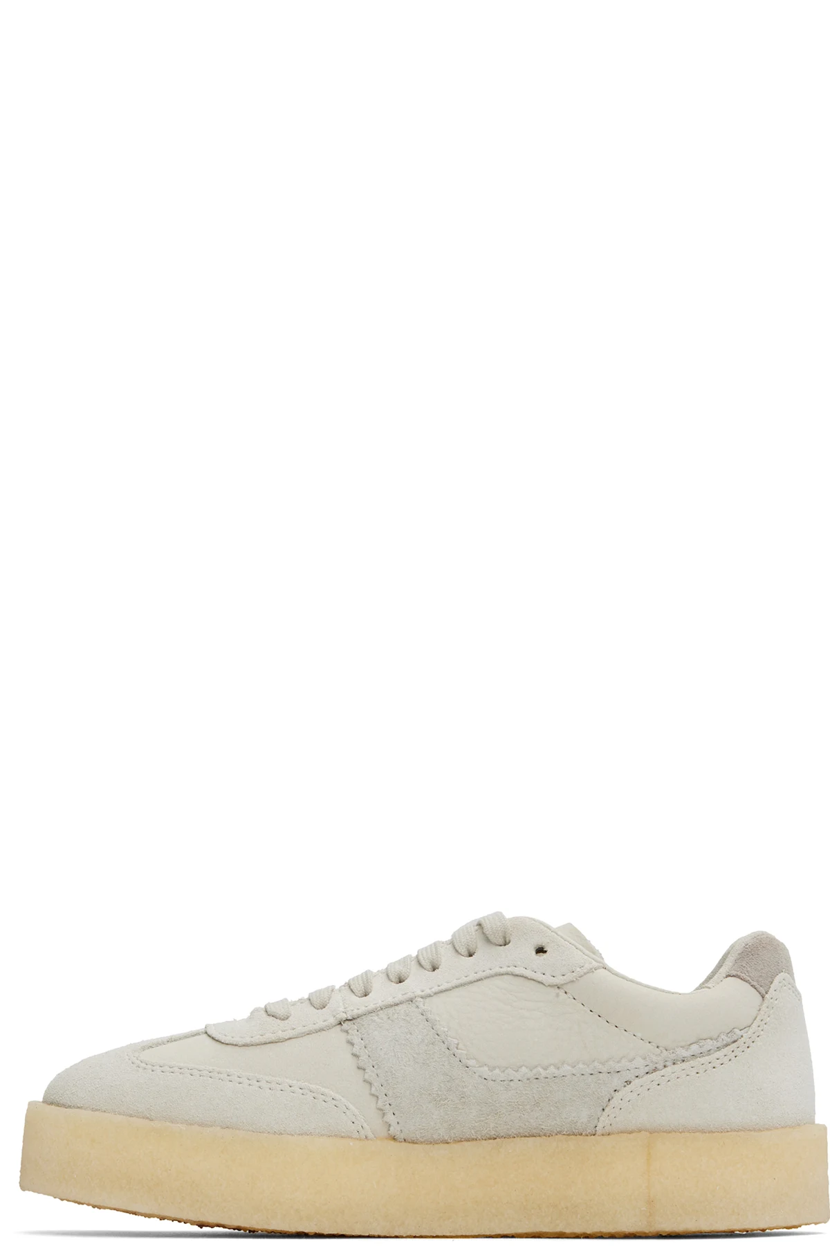 Low-top suede, grained leather, and nubuck sneakers in off-white.