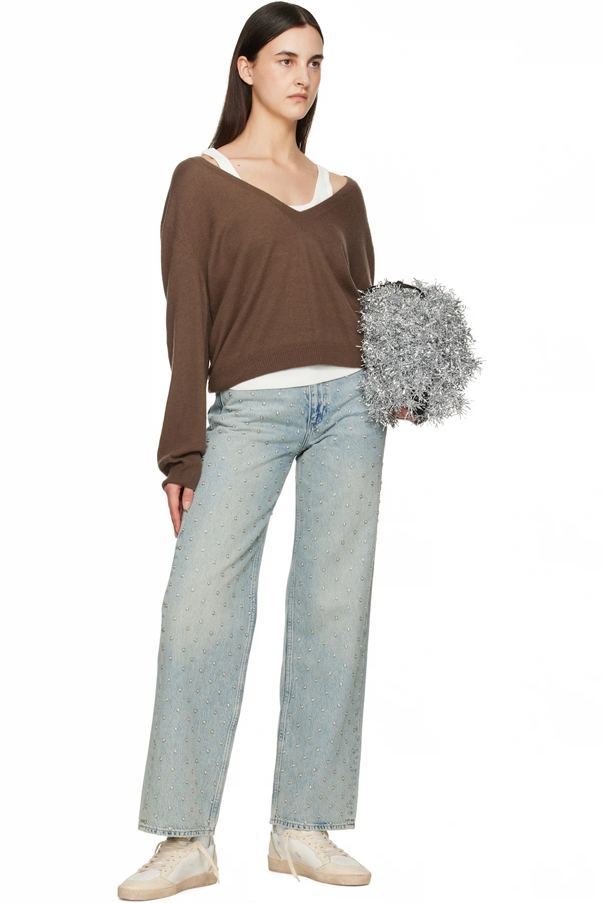 · Grained leather star appliqué at outer side