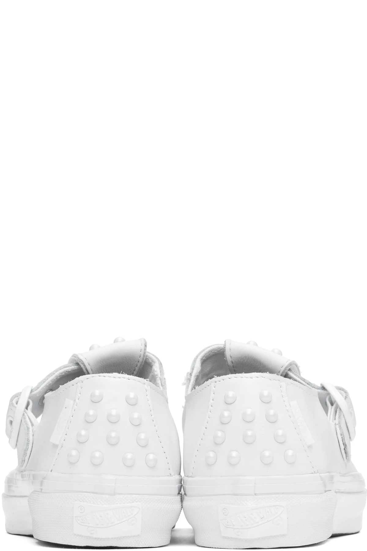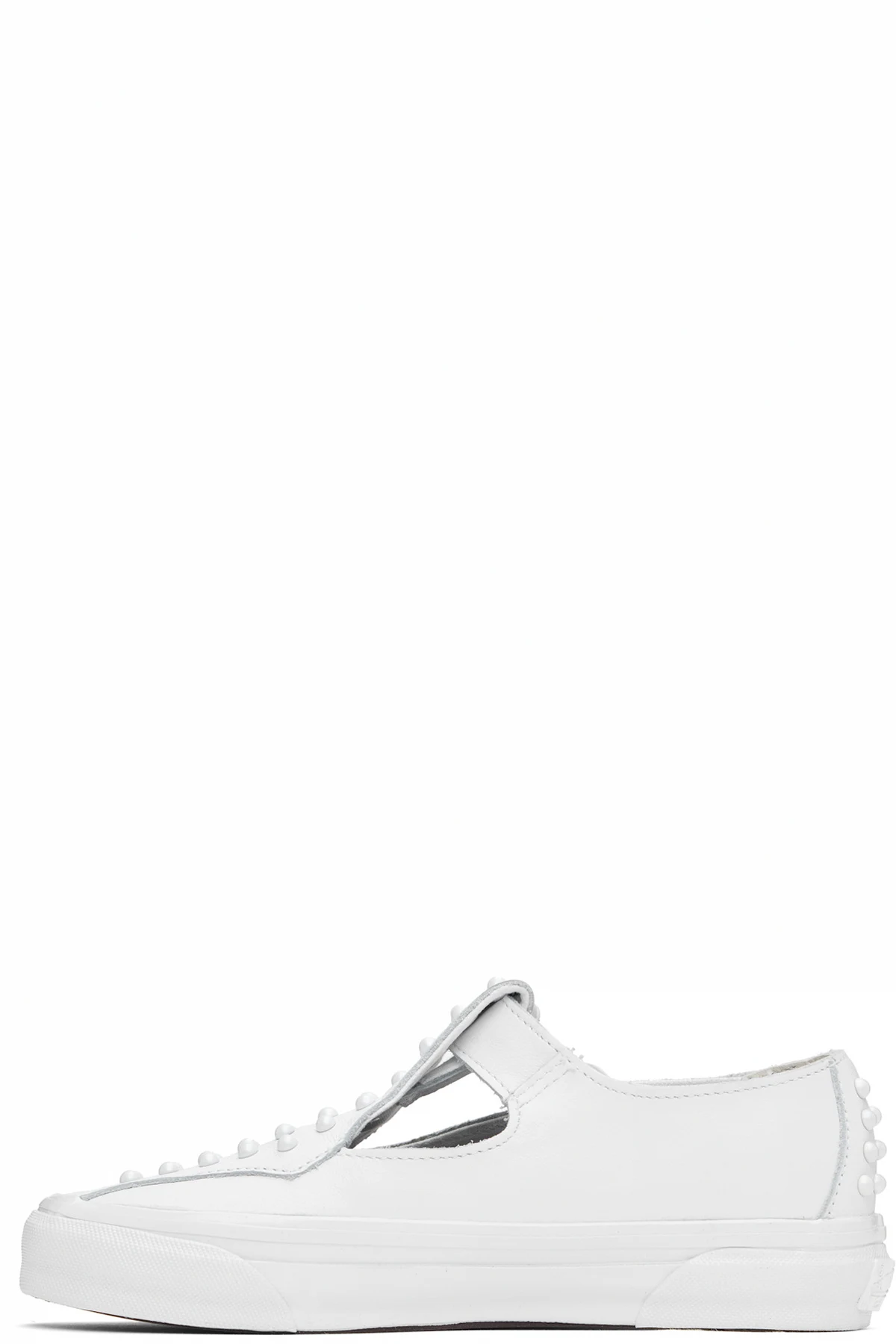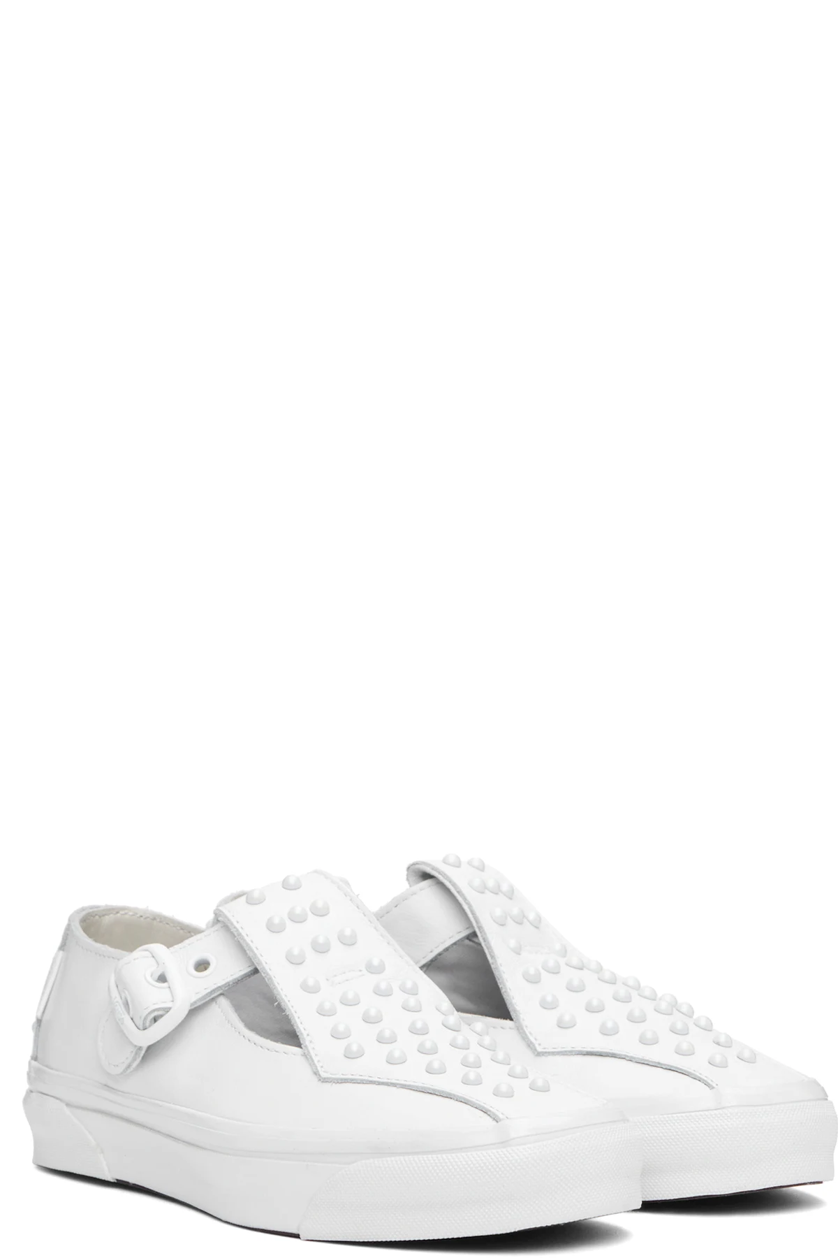 Low-top buffed leather Mary Jane-style sneakers in white.
