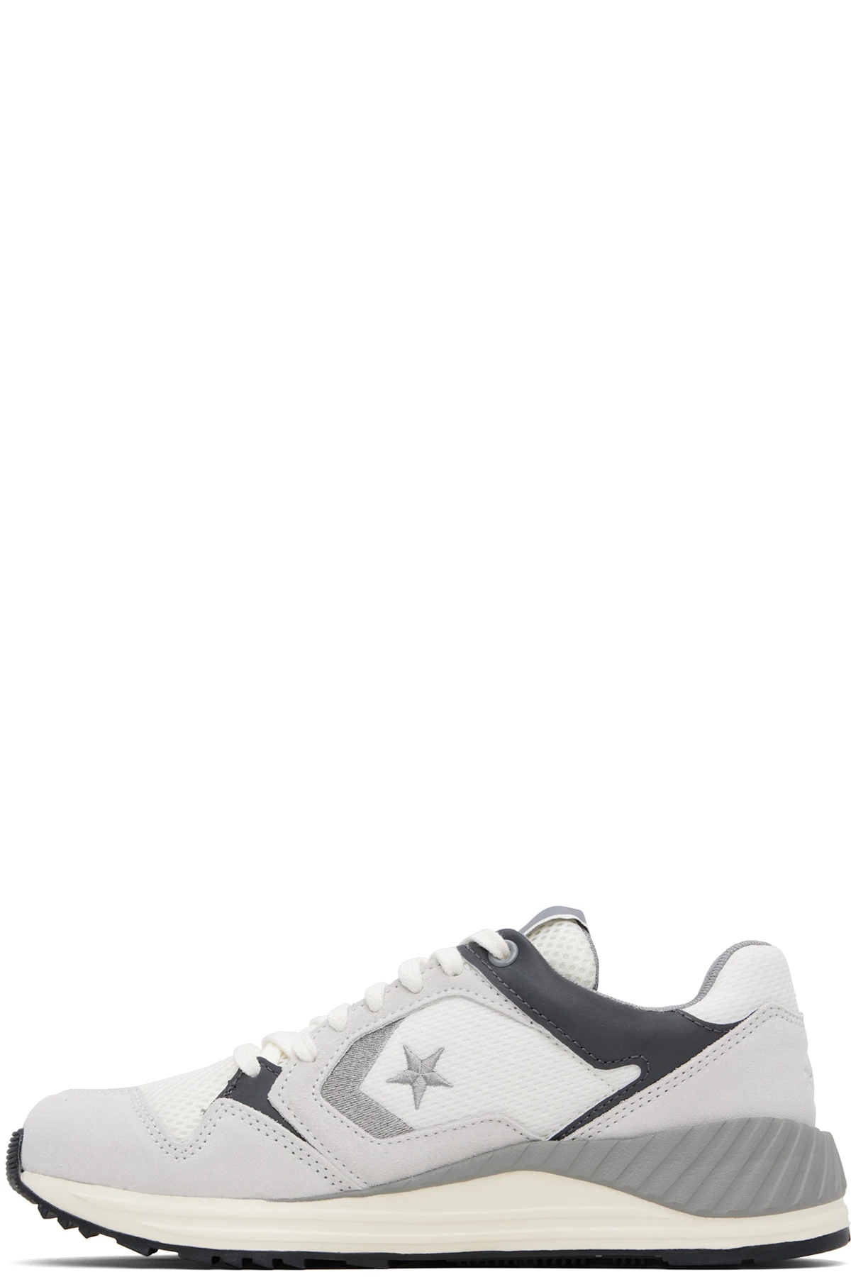 Low-top suede and mesh sneakers in gray.