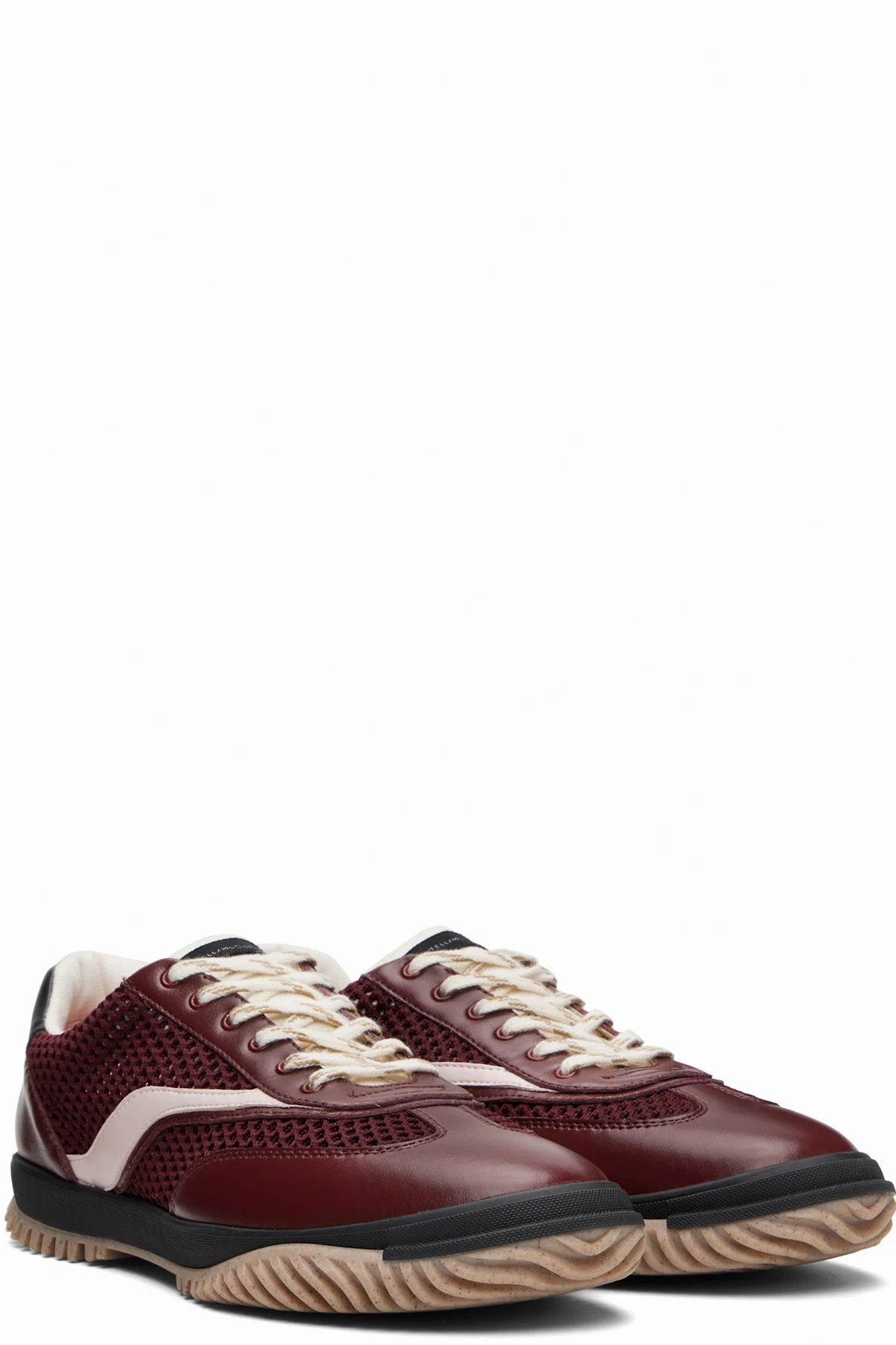Handcrafted low-top recycled nylon mesh and patent faux-leather sneakers.