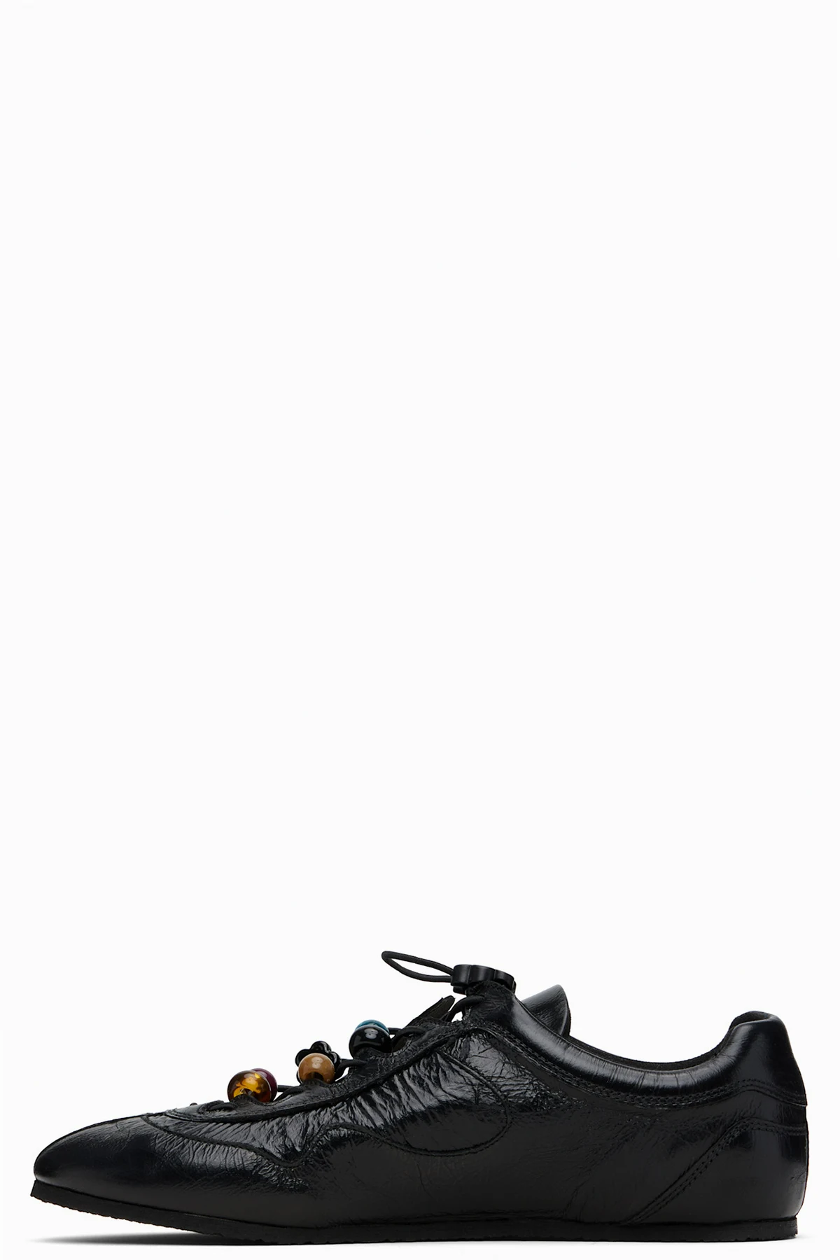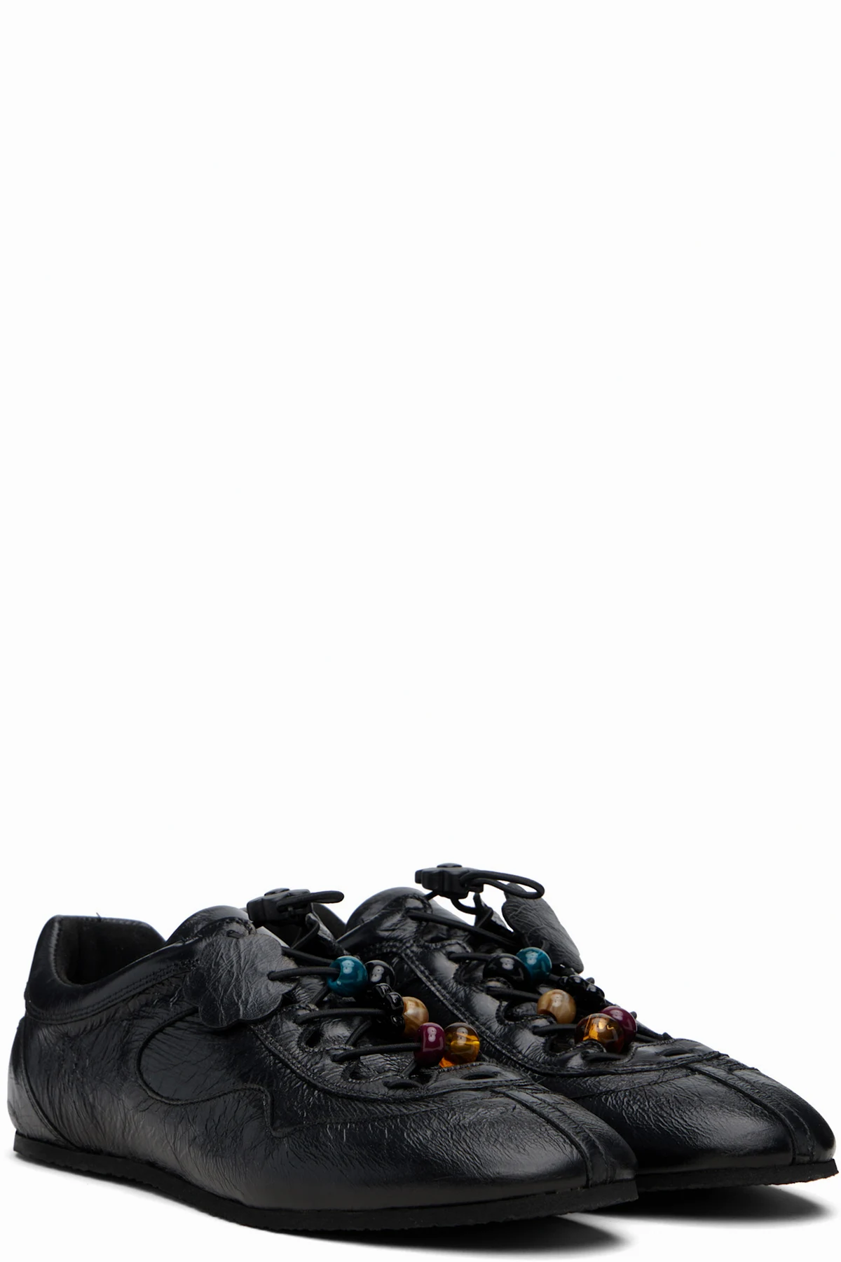 Low-top crinkled polished leather sneakers.