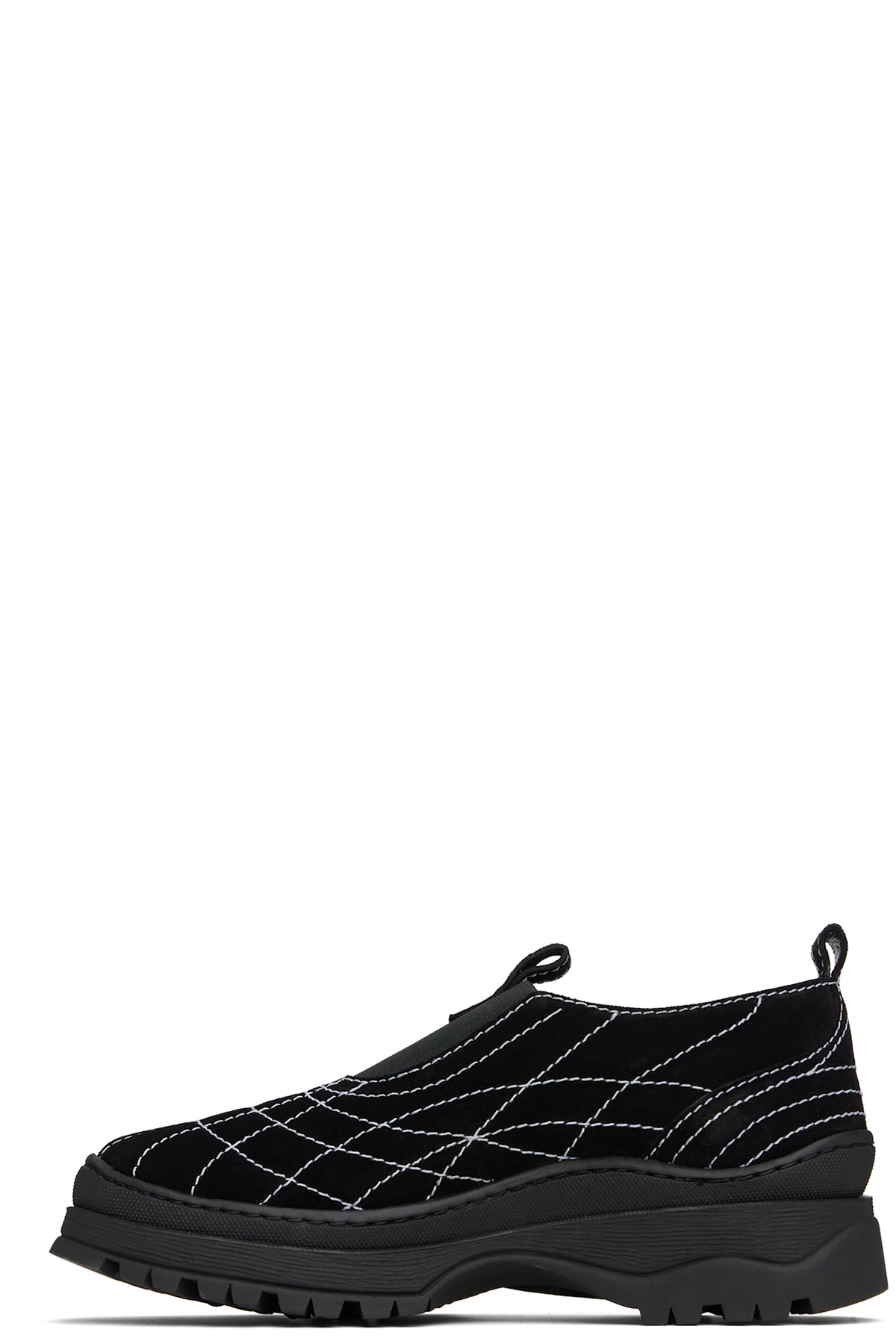 · Elasticized gusset at vamp