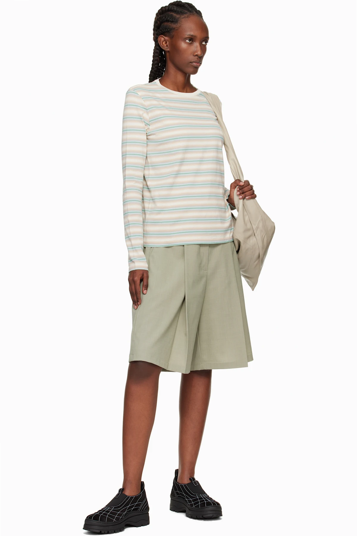 · Contrast stitching in white