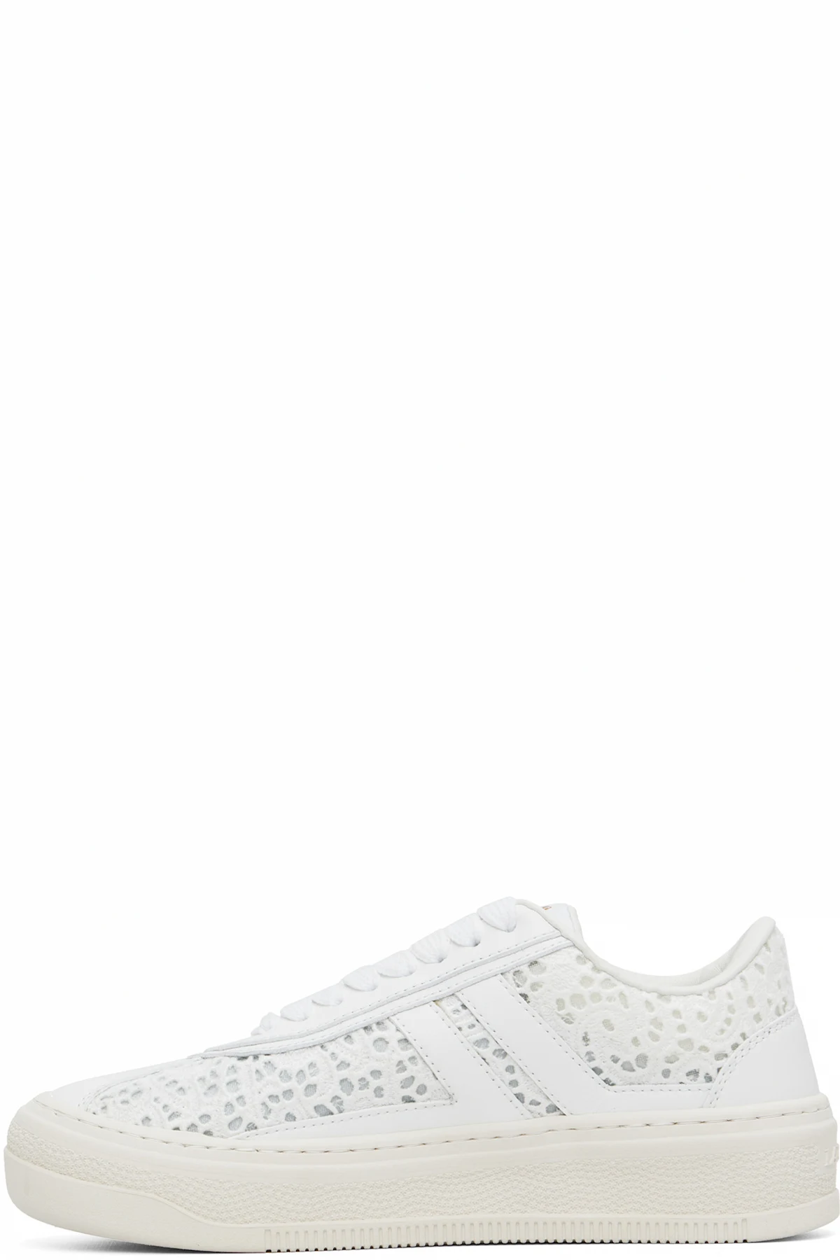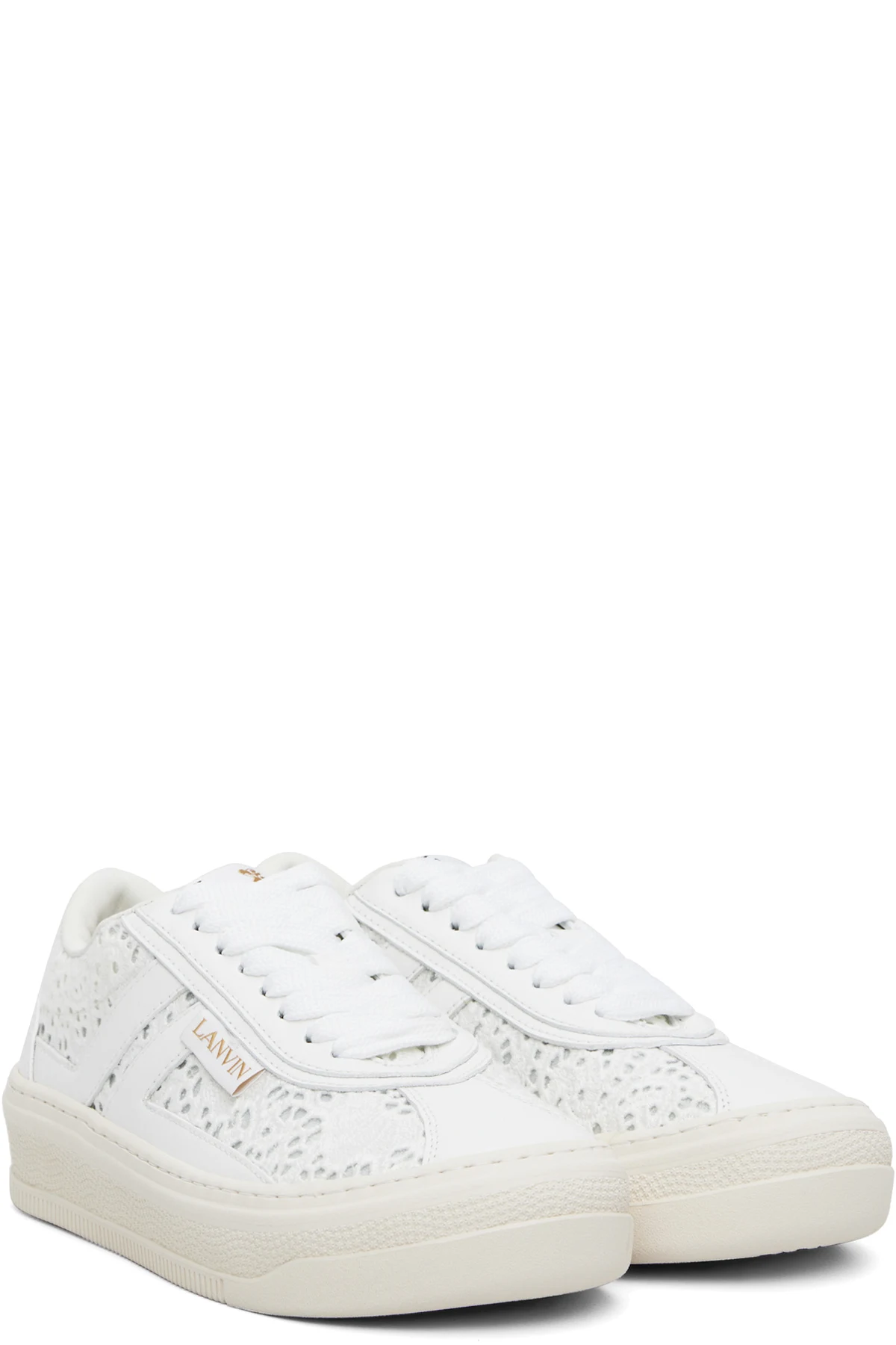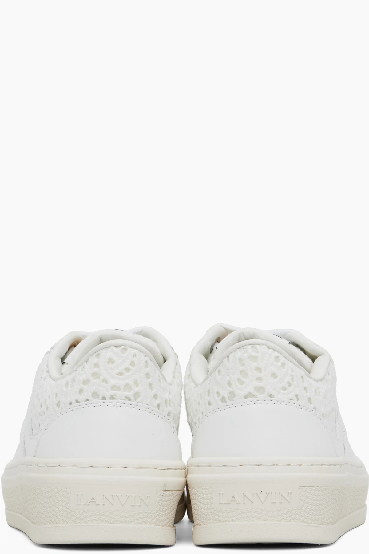 Low-top open-crocheted, mesh and buffed calfskin sneakers.