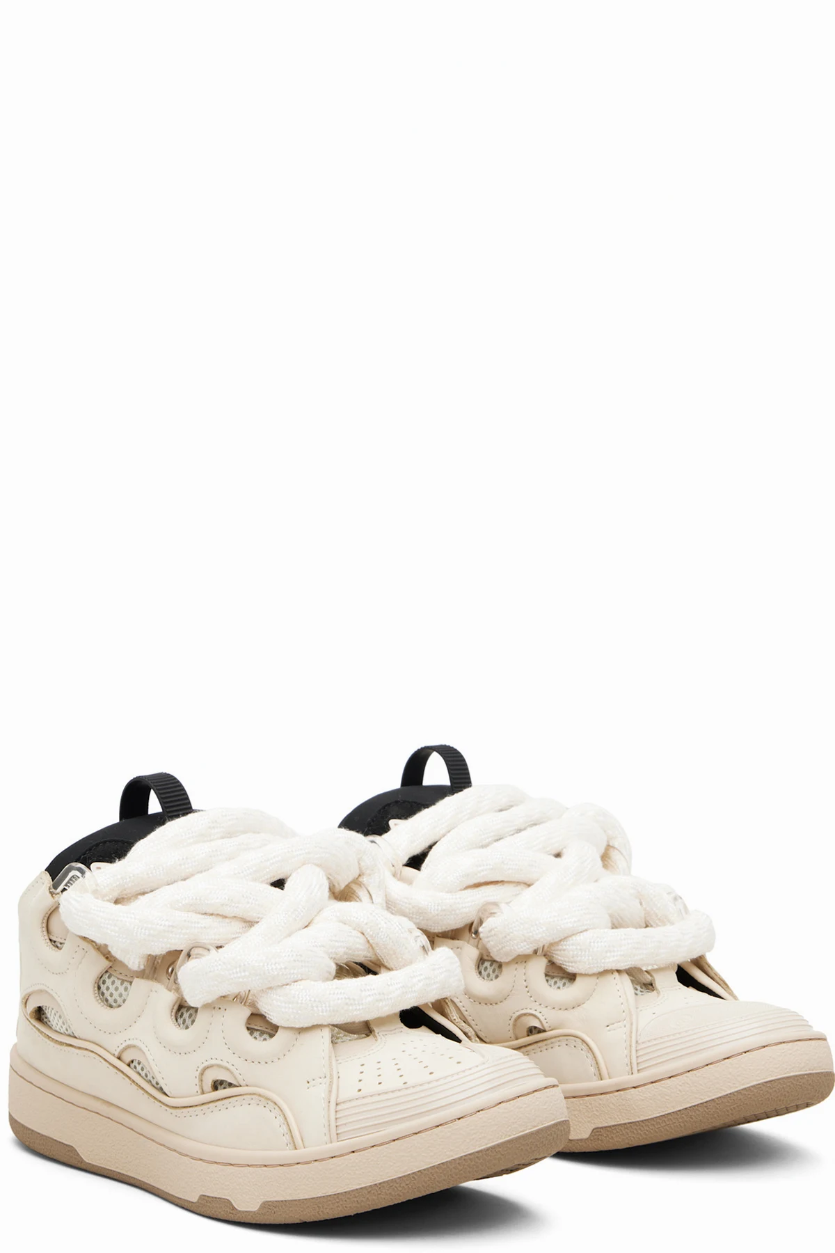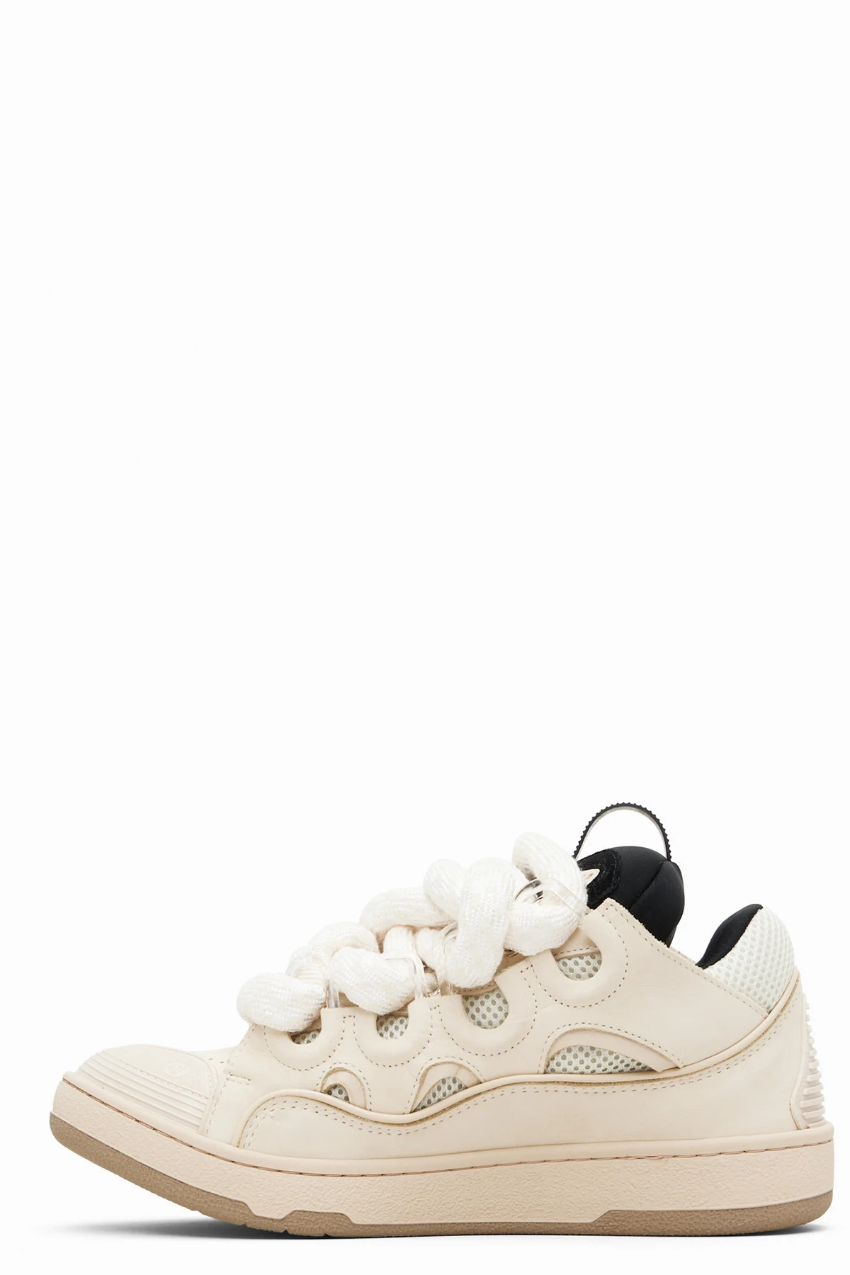 Beige Curb Leather With Snake Laces Sneakers