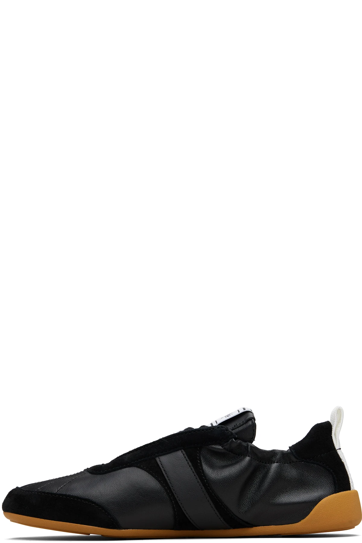 Low-top paneled grained sheepskin and suede sneakers.