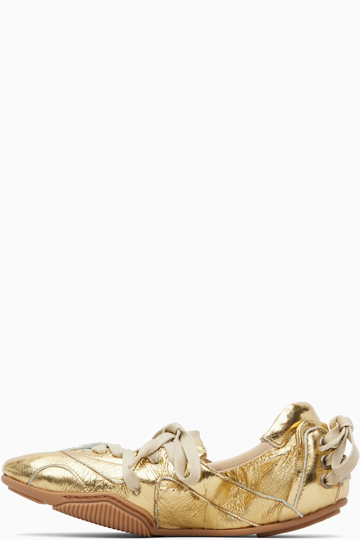 Low-top laminated lambskin ballerina flat-style sneakers.