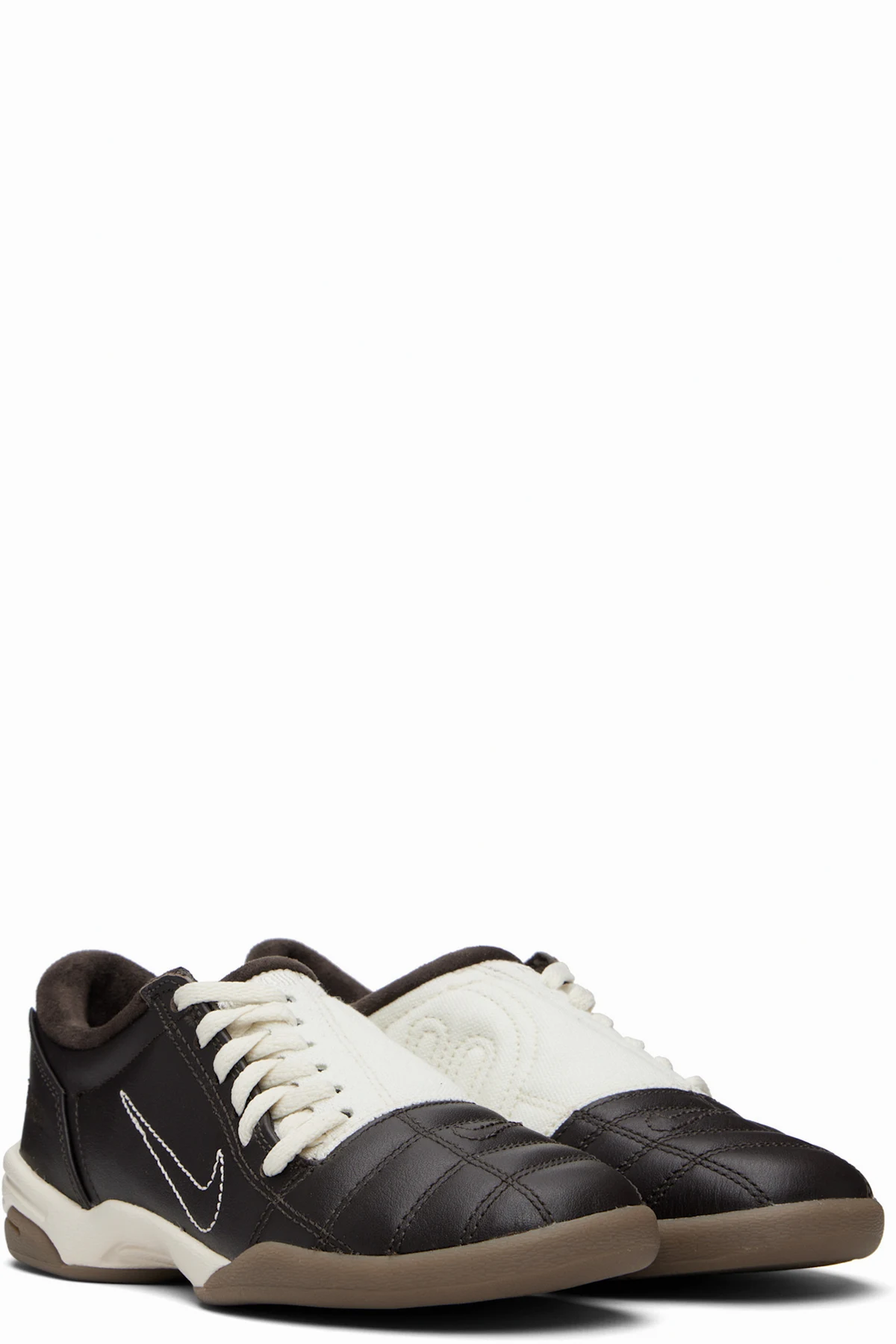 Low-top canvas and buffed leather sneakers.