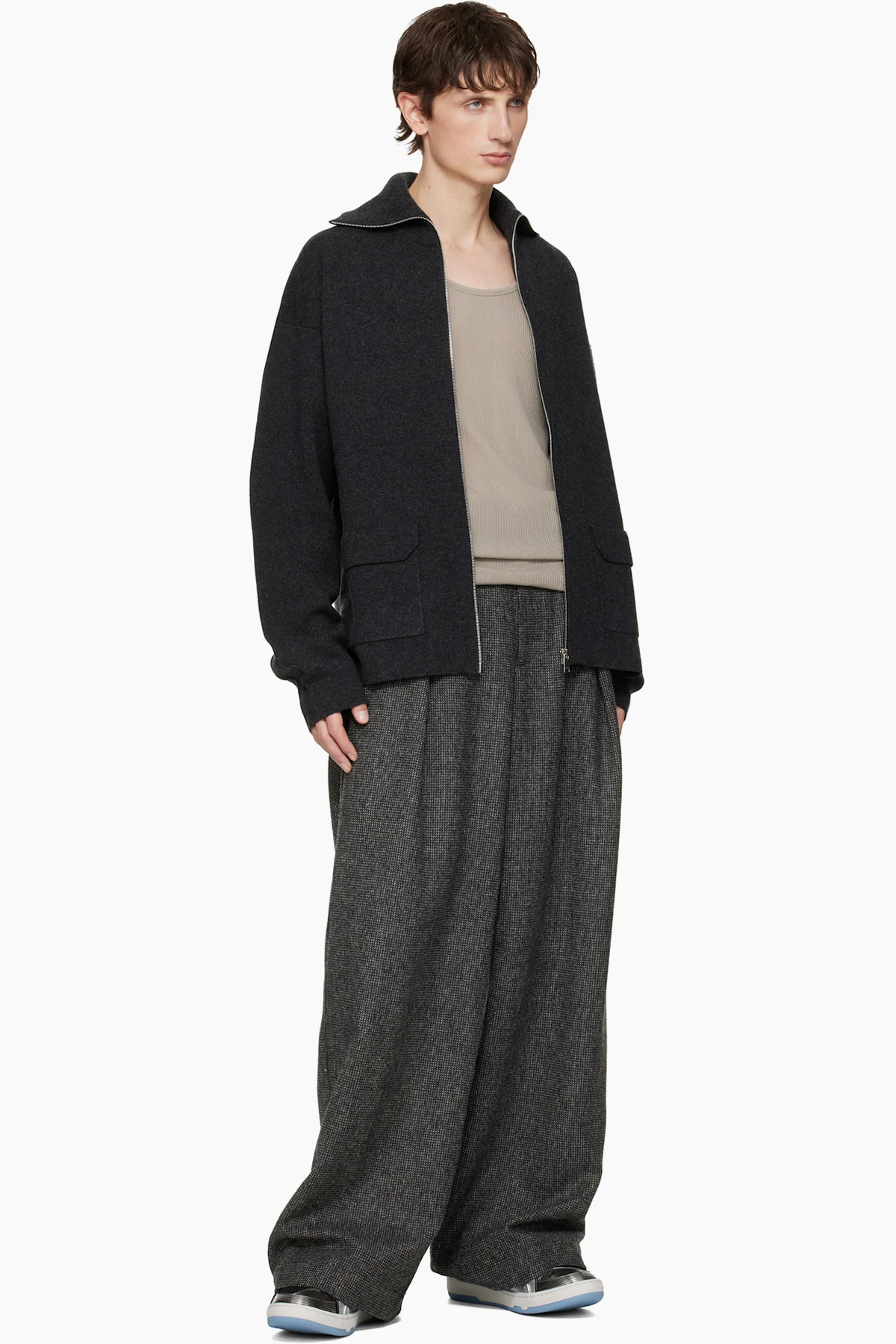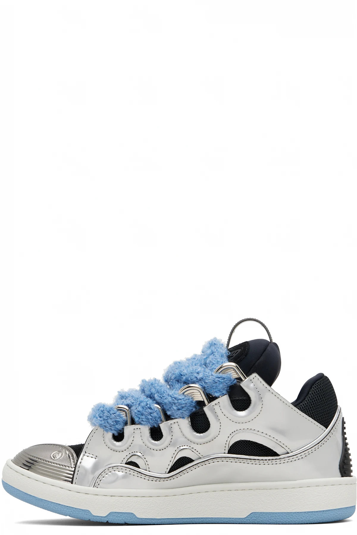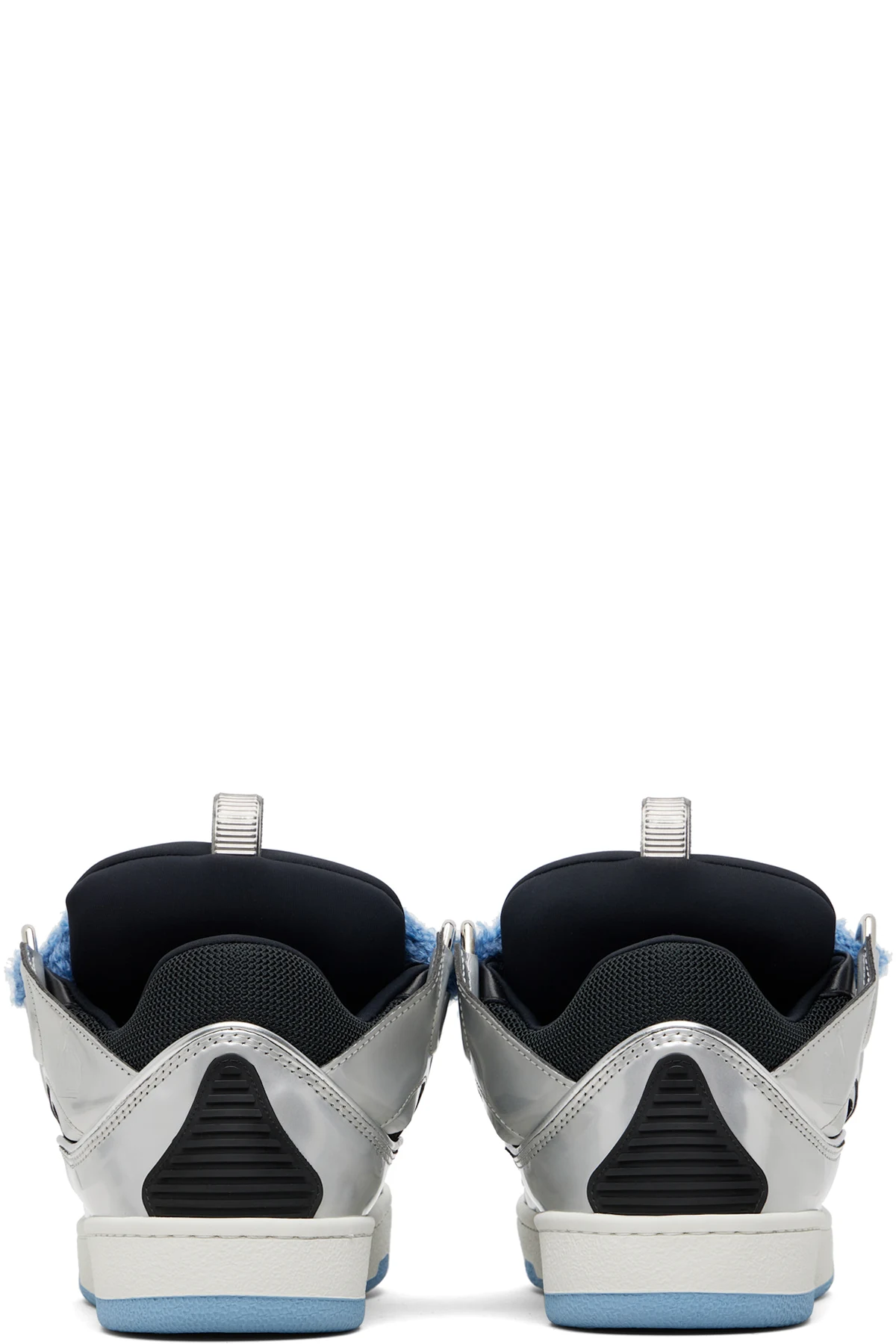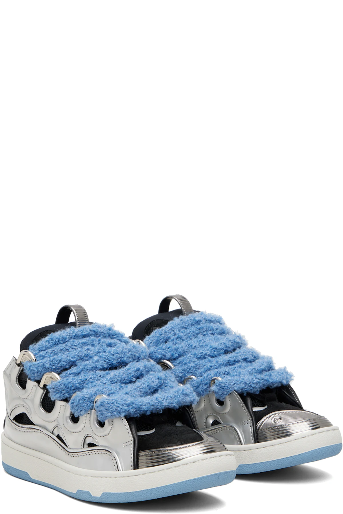 Low-top patent calfskin, calfskin suede, and mesh sneakers.