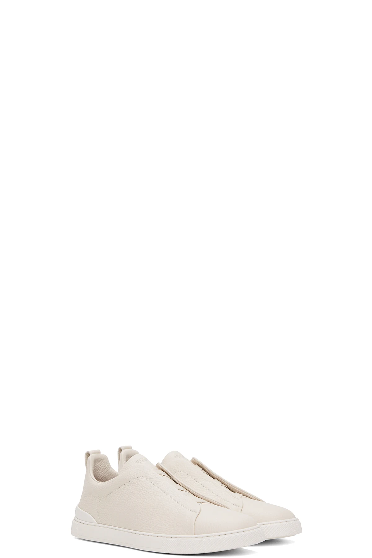 Low-top grained deerskin sneakers in off-white.