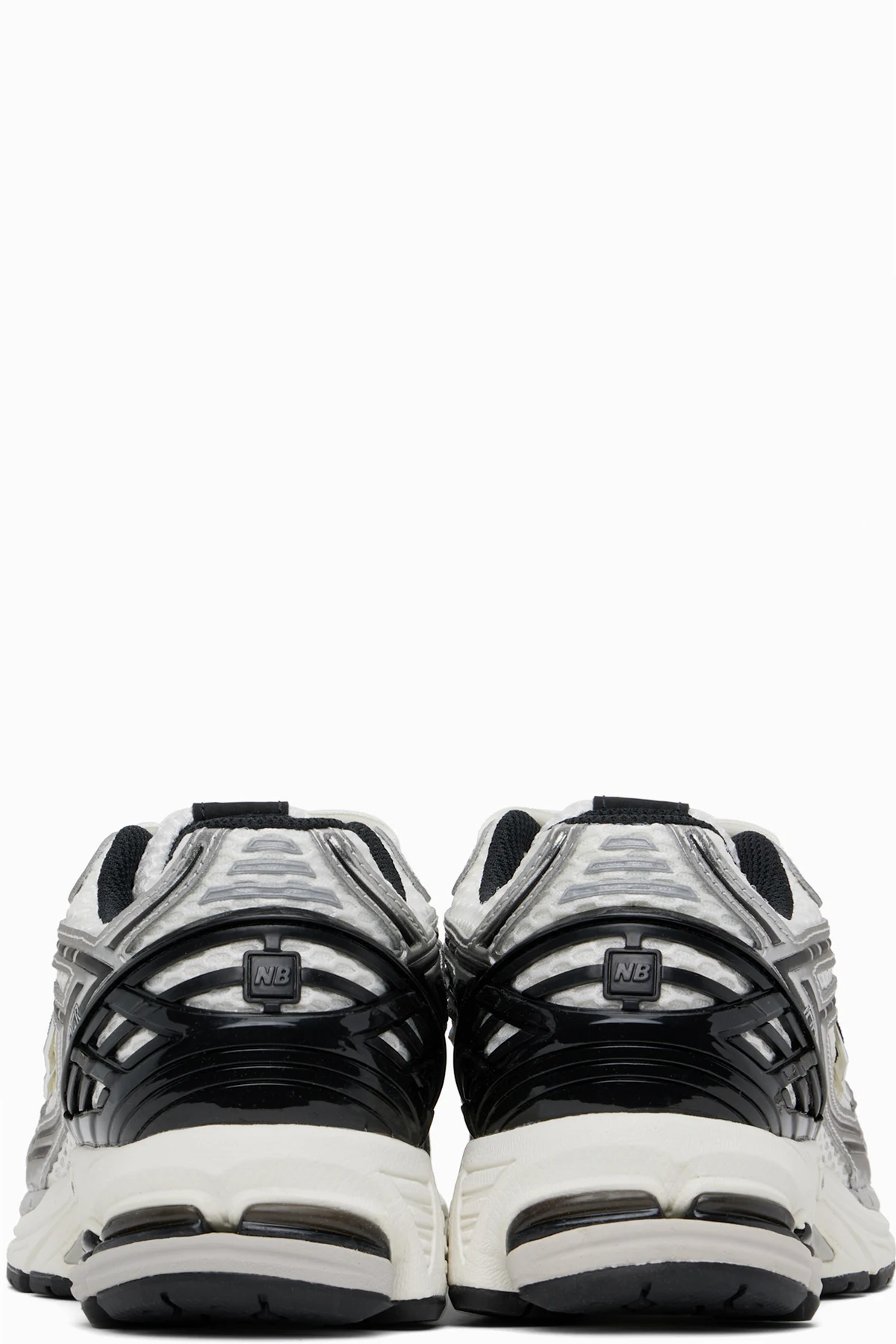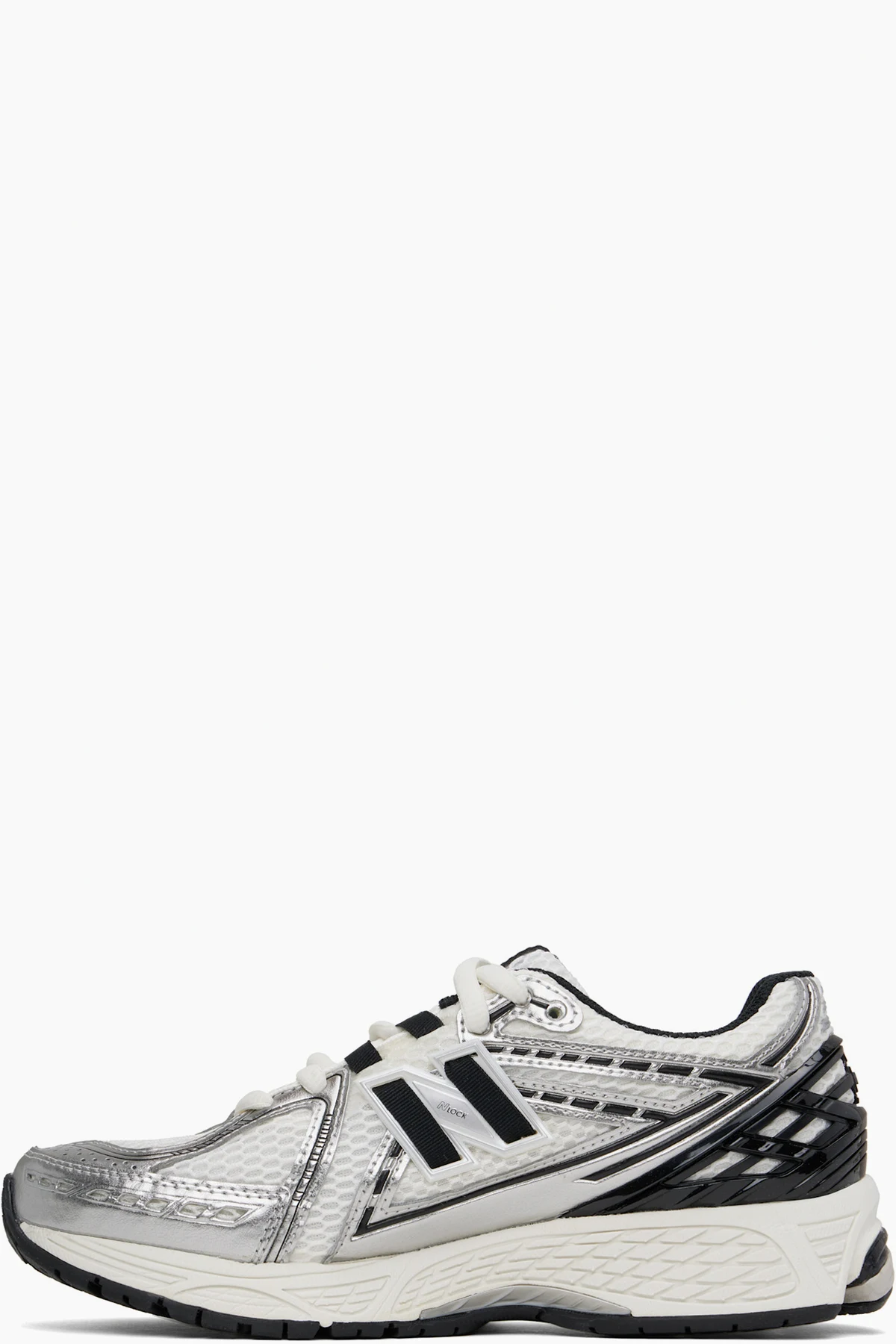 Low-top mesh and grained faux-leather sneakers in white and silver tone.