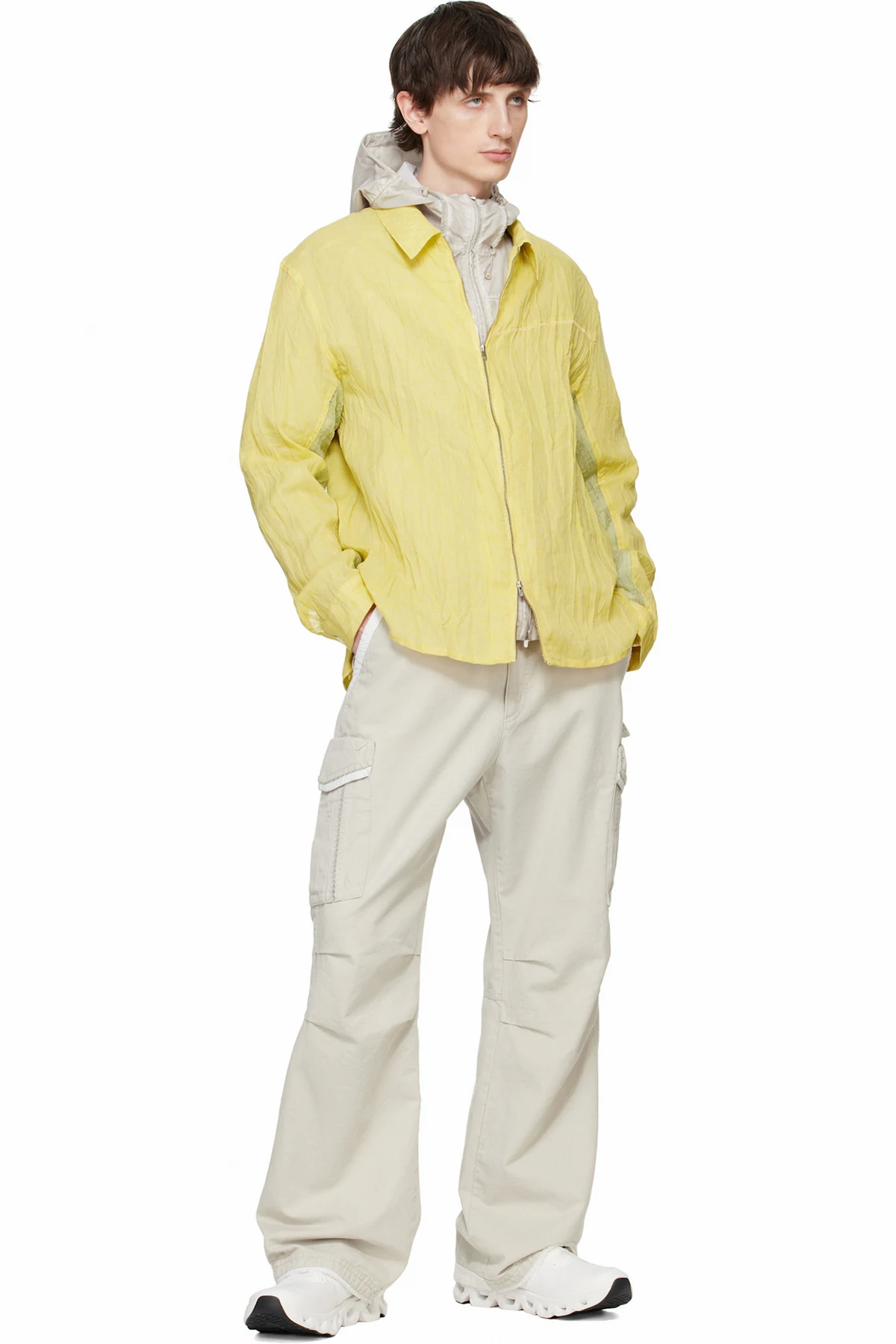 Low-top knit and recycled mesh sneakers in white.