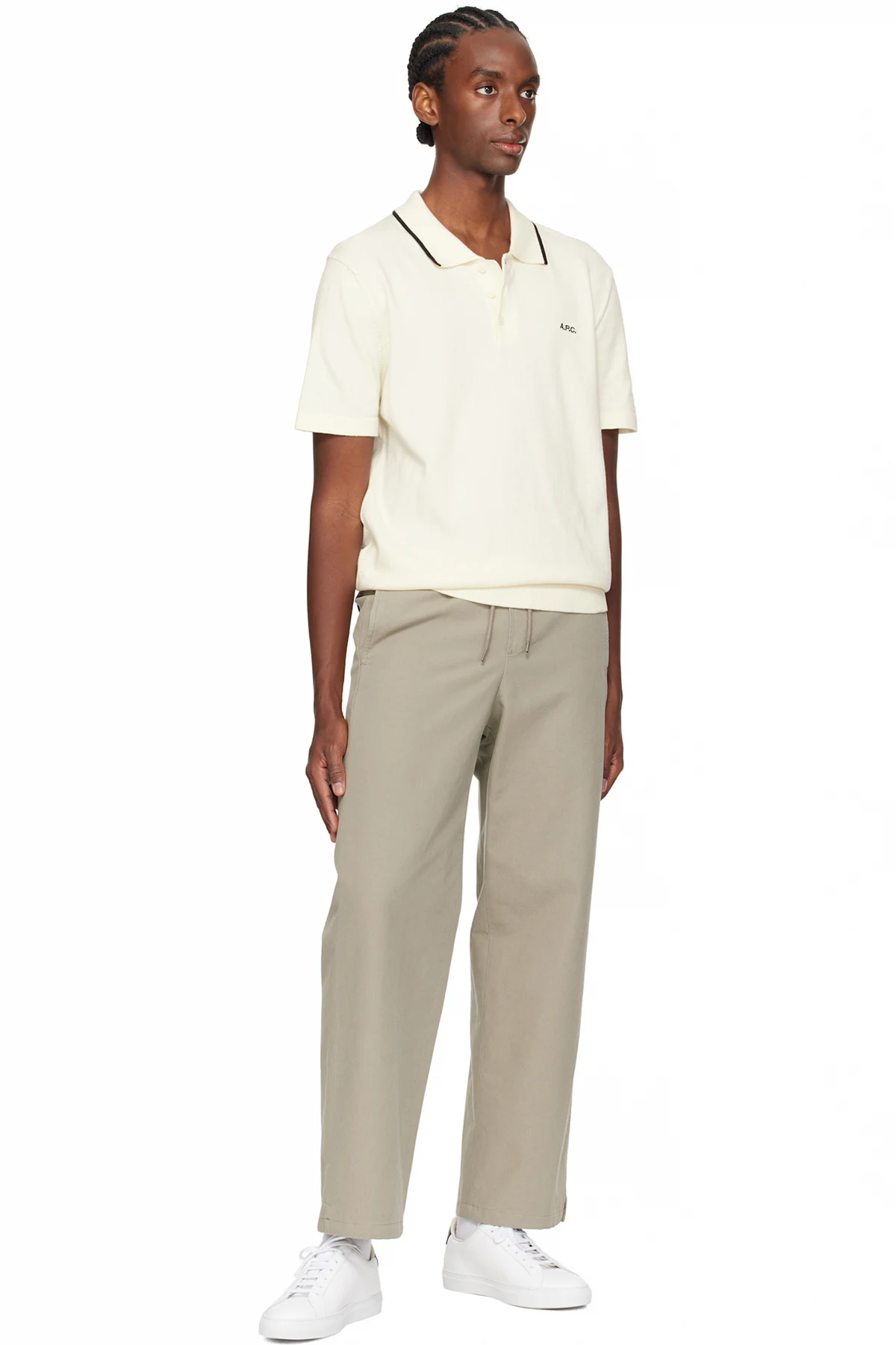Low-top buffed leather sneakers in white.