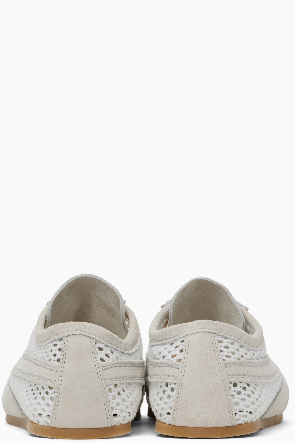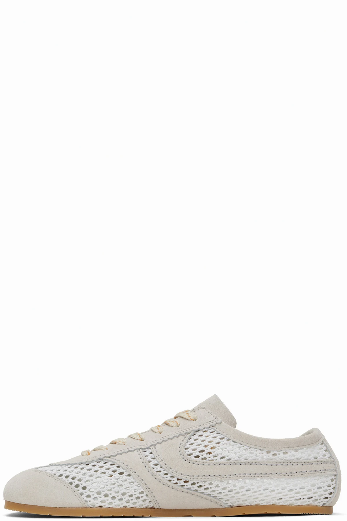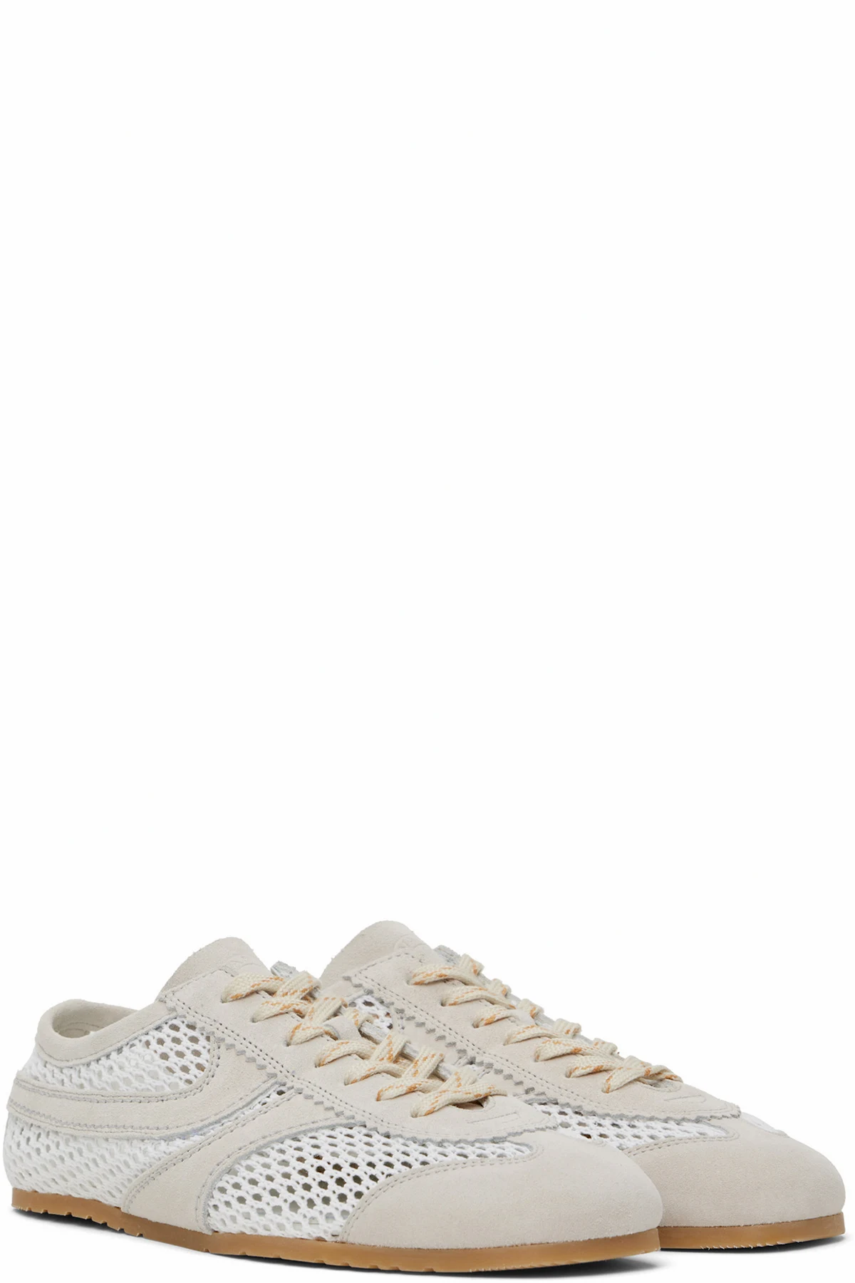 Low-top nappa calfskin suede and mesh sneakers in white and beige.