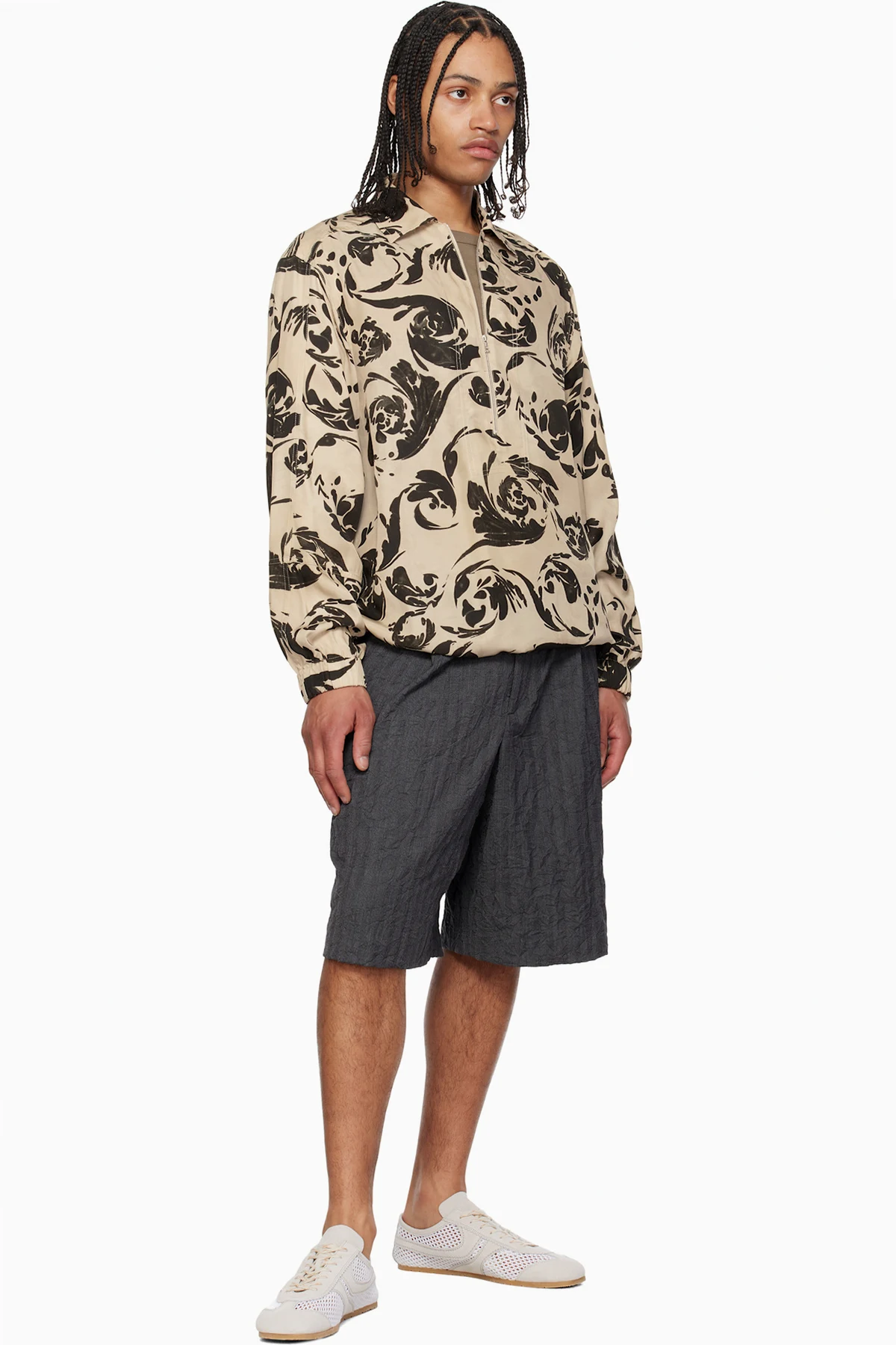 White & Beige Suede Sneakers