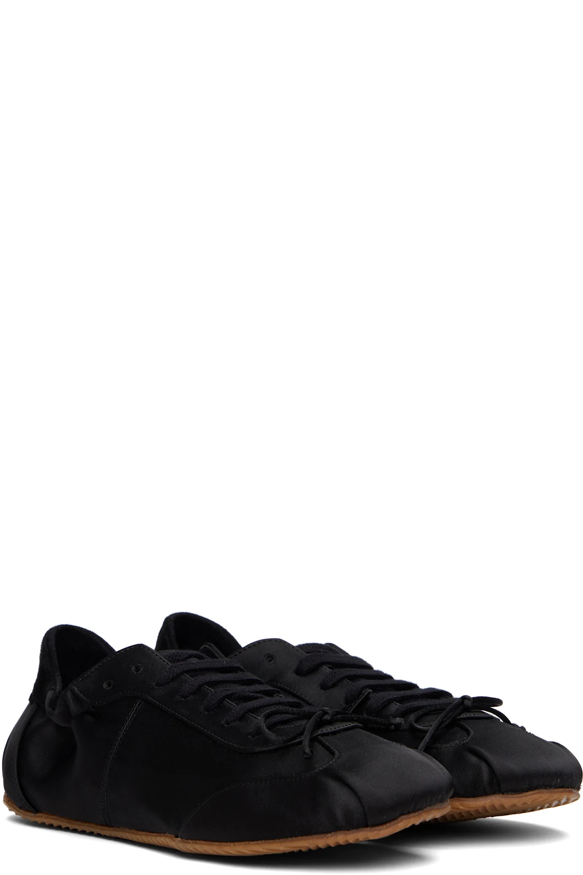 Low-top satin sneakers in black.