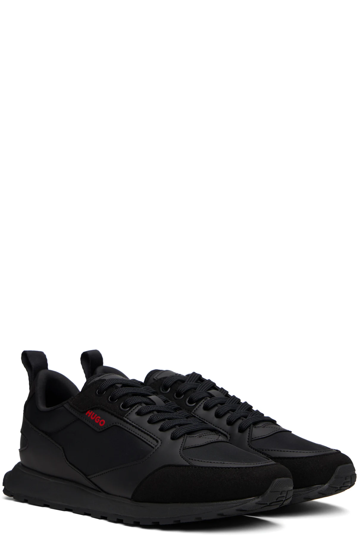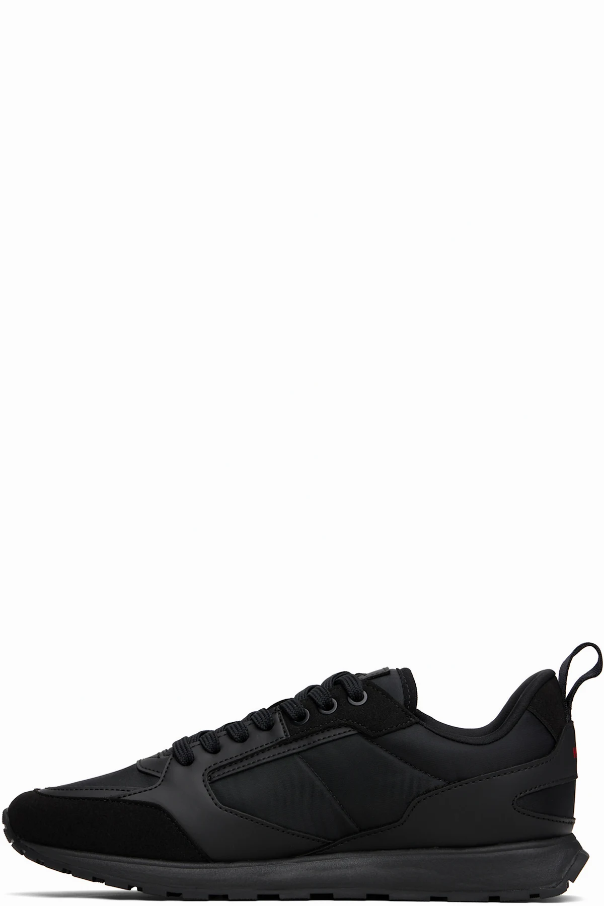 Low-top buffed faux-leather and taffeta sneakers in black.