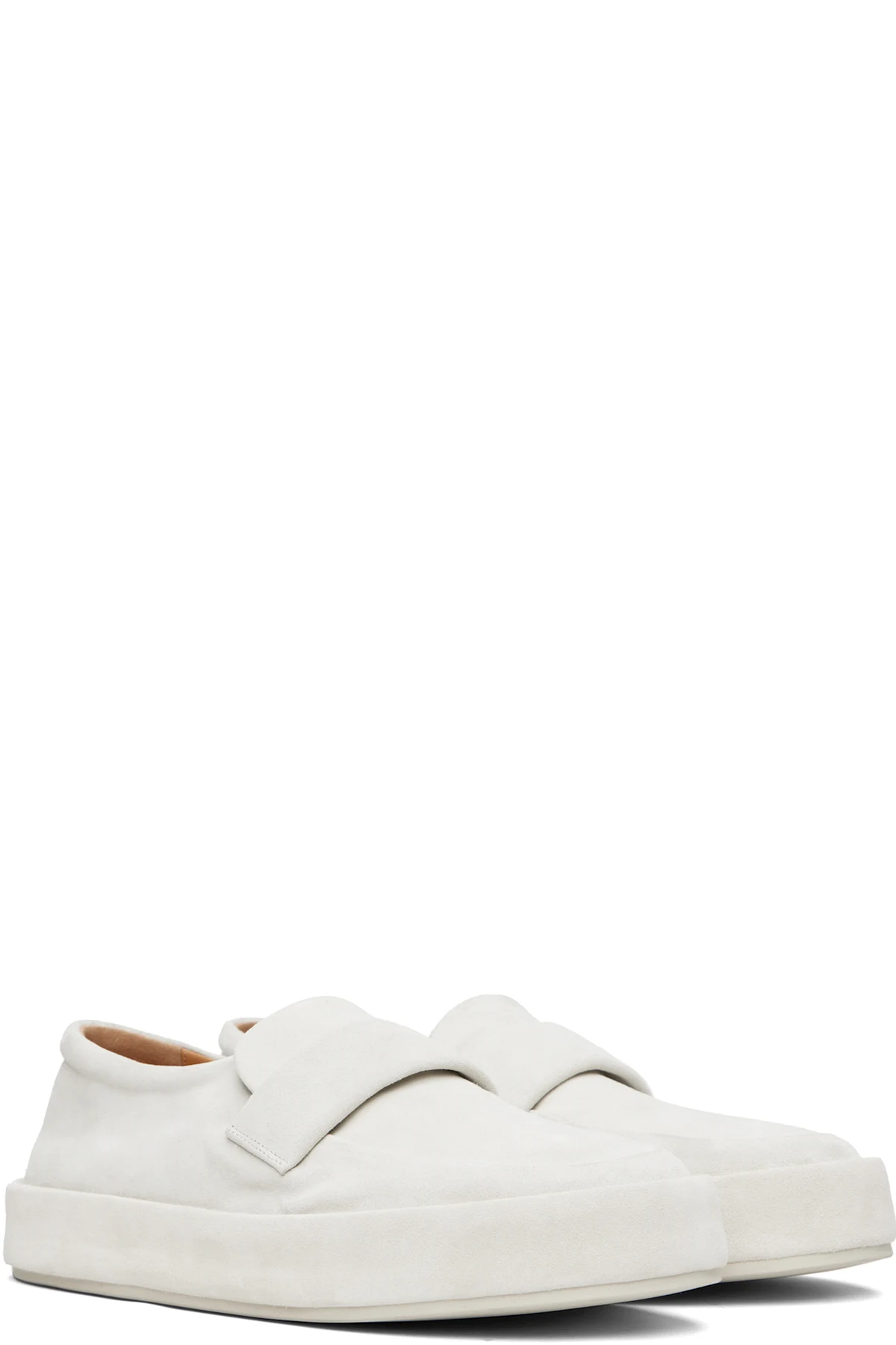 Suede loafers.