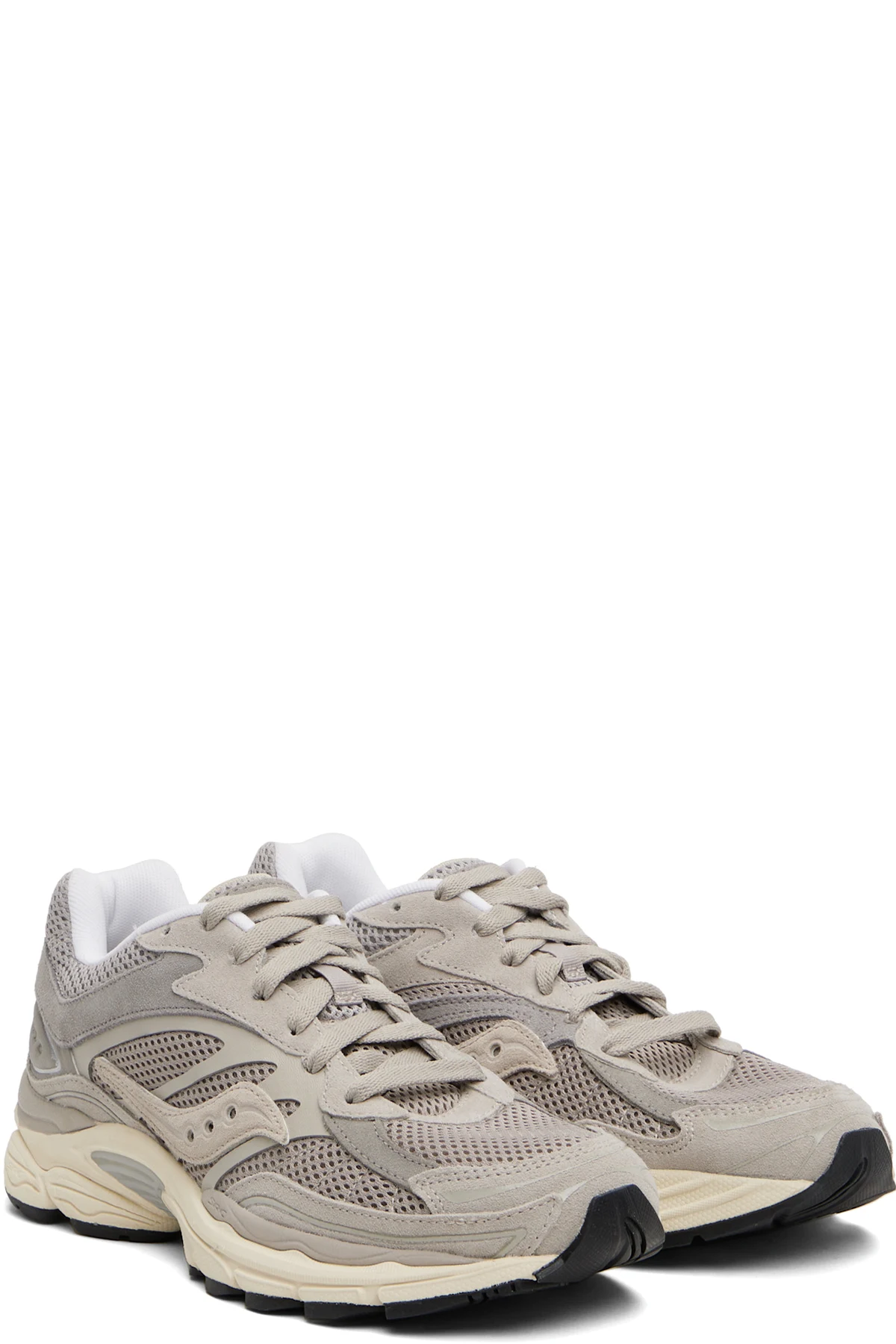 Low-top suede, grained leather, and mesh sneakers.