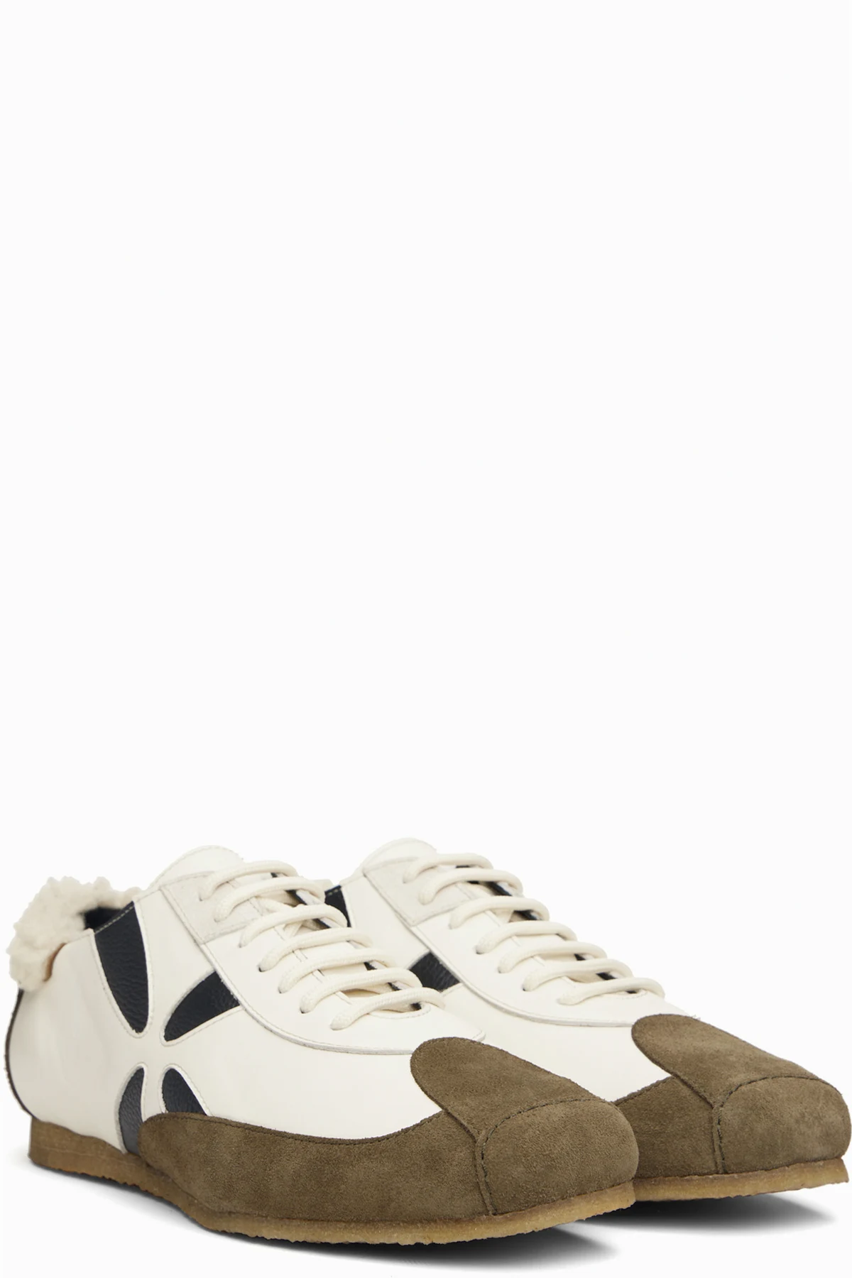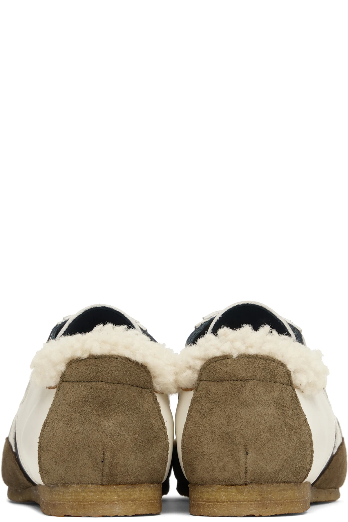 Off-White & Brown Slashed Trainer Sneakers