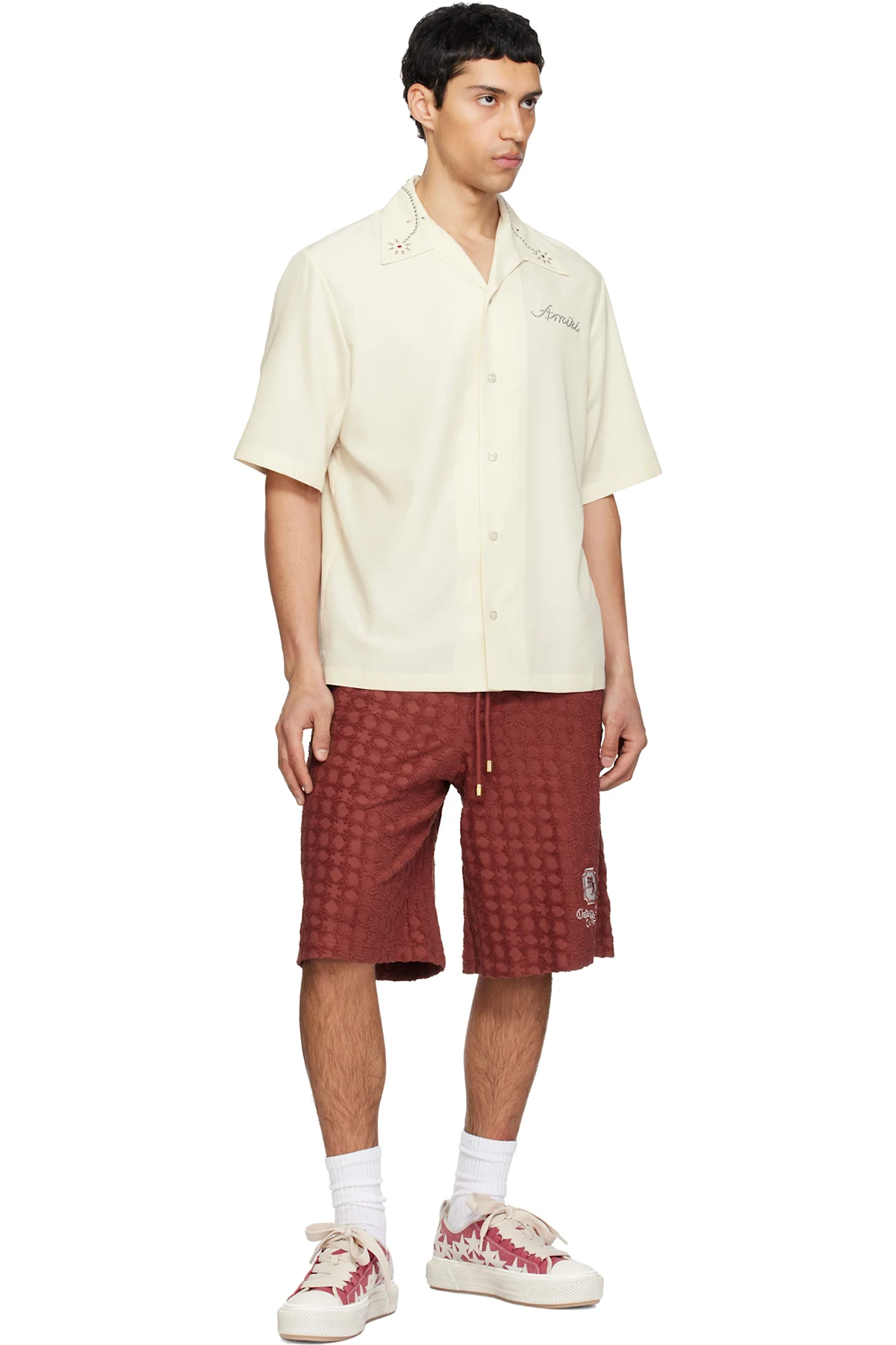 Red Distressed Stars Court Low Sneakers